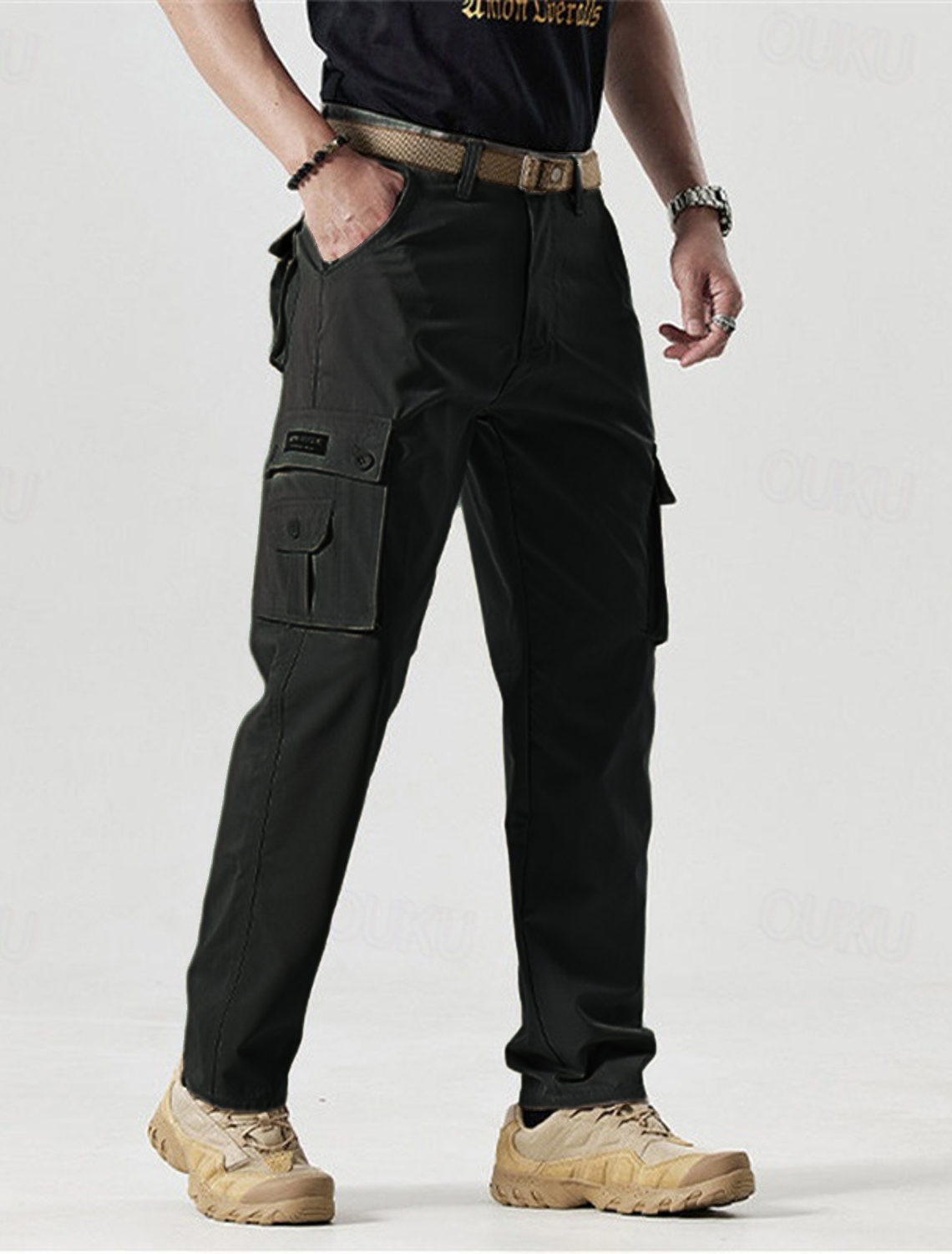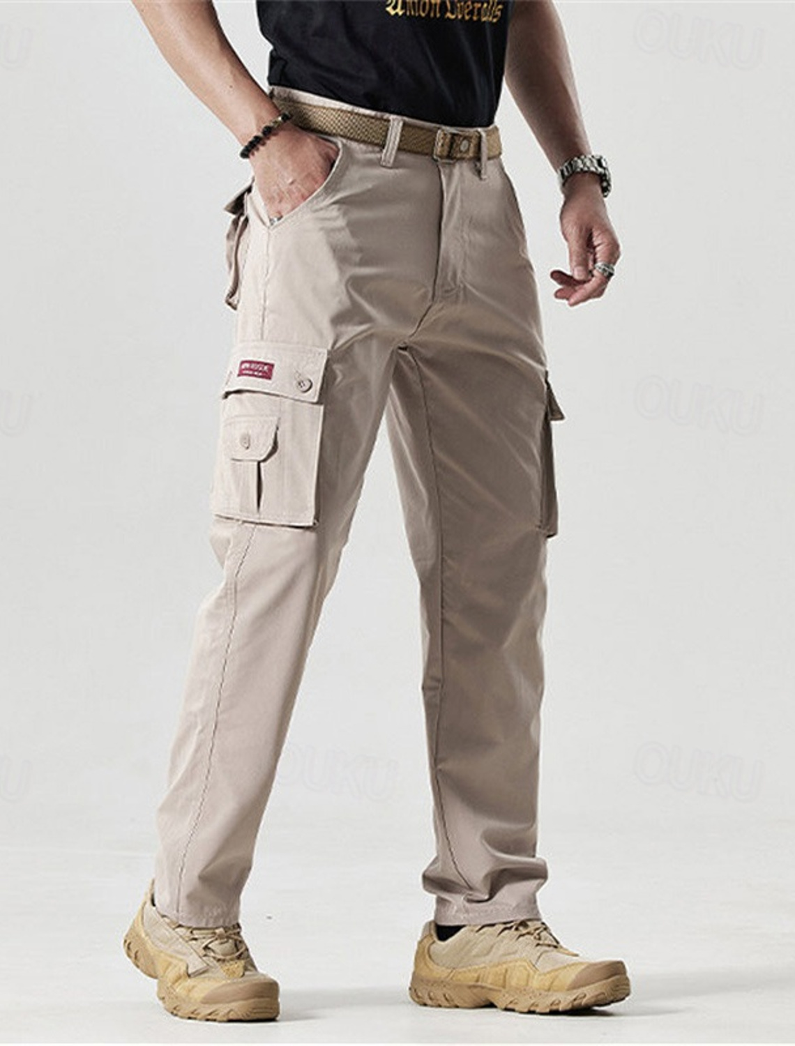 Pockets: Multiple functional pockets, including two side cargo pockets, two front pockets, and two back pockets with reinforced stitching