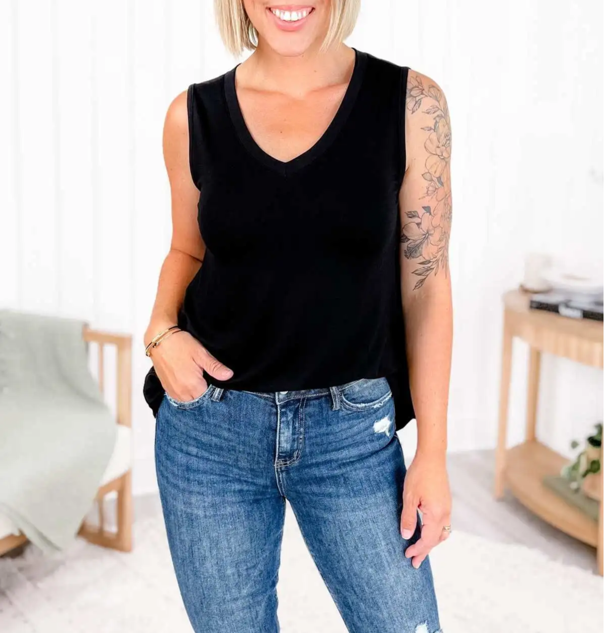 Embrace the simplicity and elegance of our V-Neck Tank Top and make it a staple in your wardrobe. Shop now to find your perfect fit and experience the perfect fusion of style and comfort.