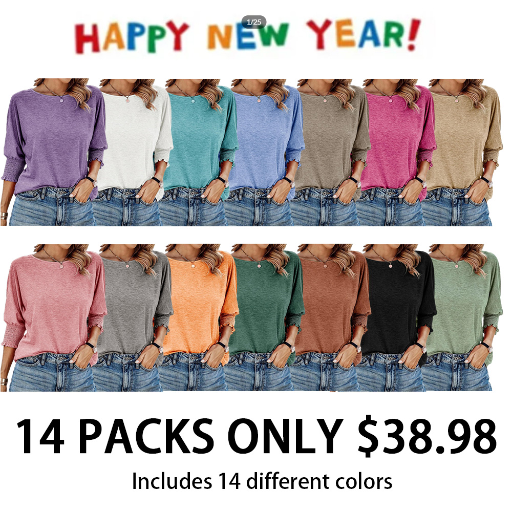 ⏰Hot Sale-2025 Tops 3/4 Sleeve T-Shirts Cute Crewneck Tees Blouses