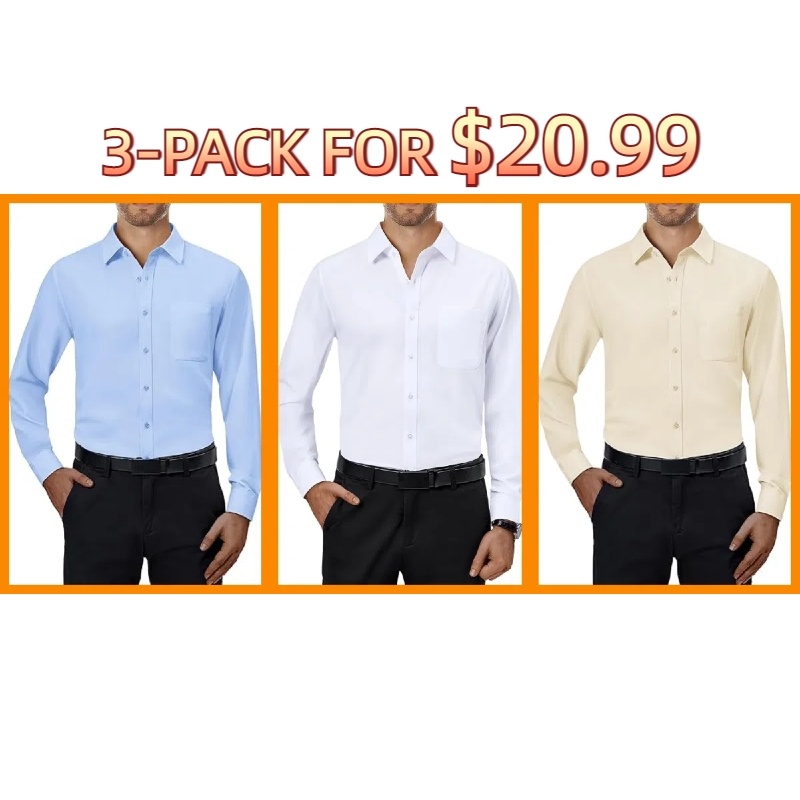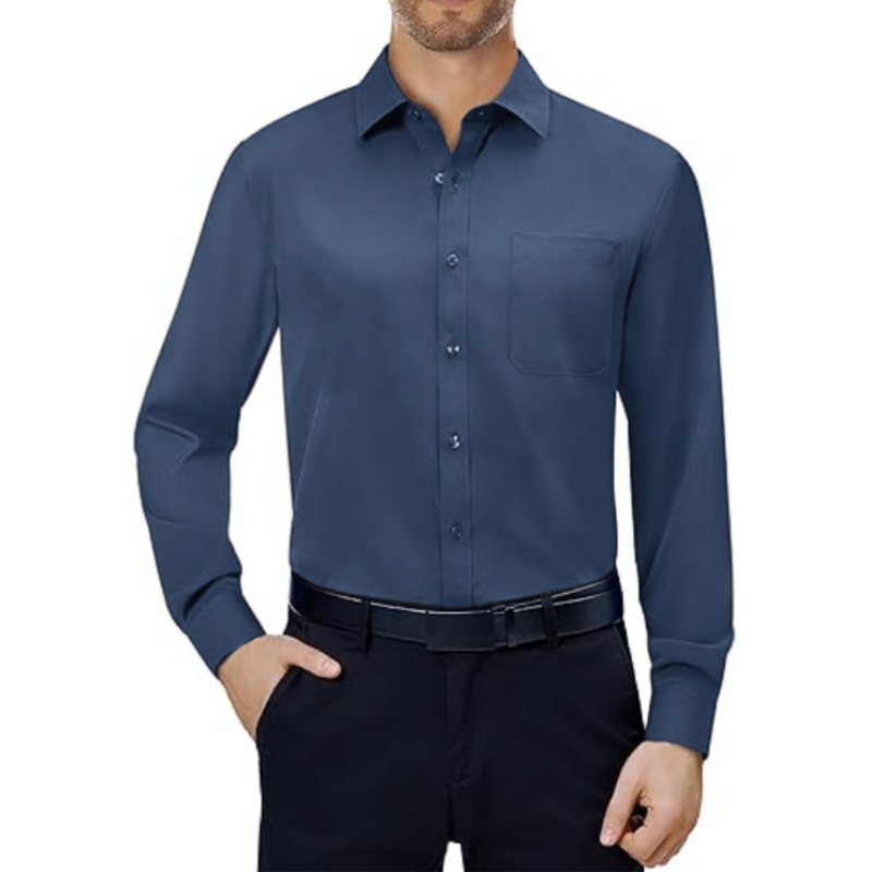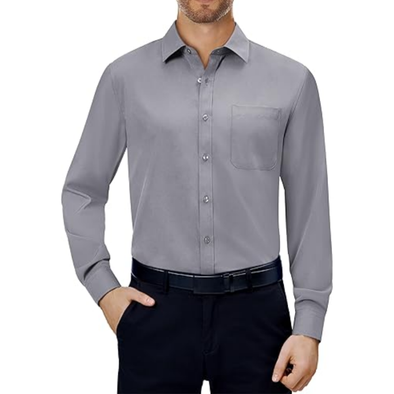 • 💪Mens Dress Shirts 4-Way Stretch Long Sleeve Collared Casual Solid Wedding Dating Button Down Shirt