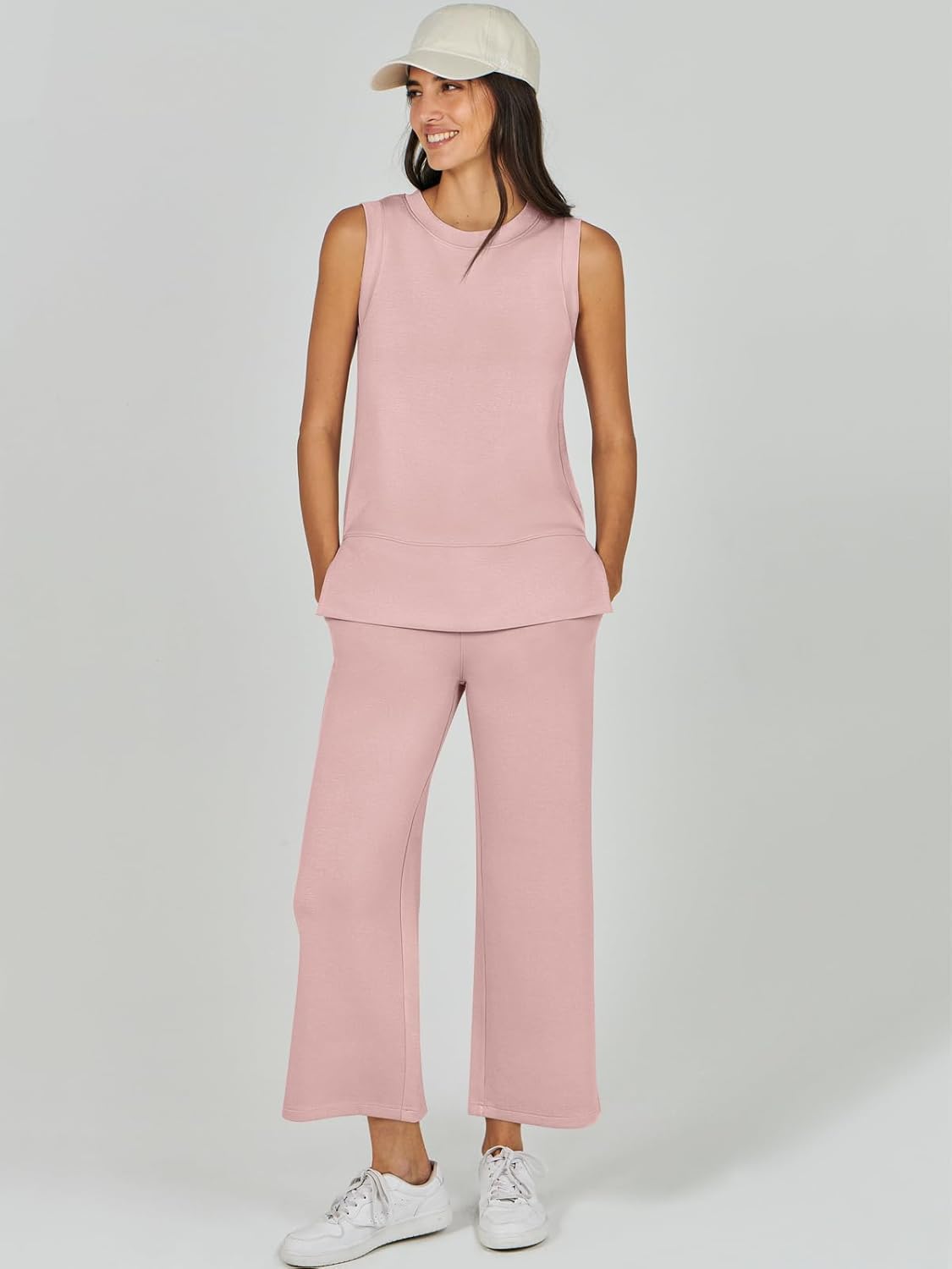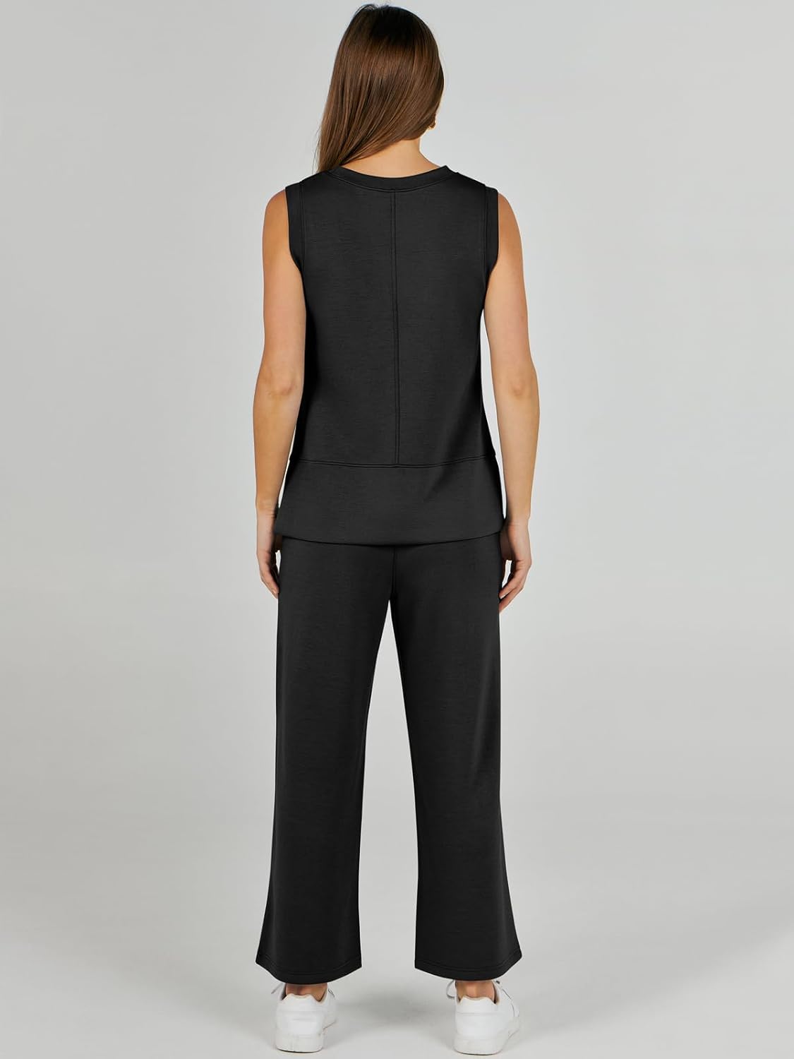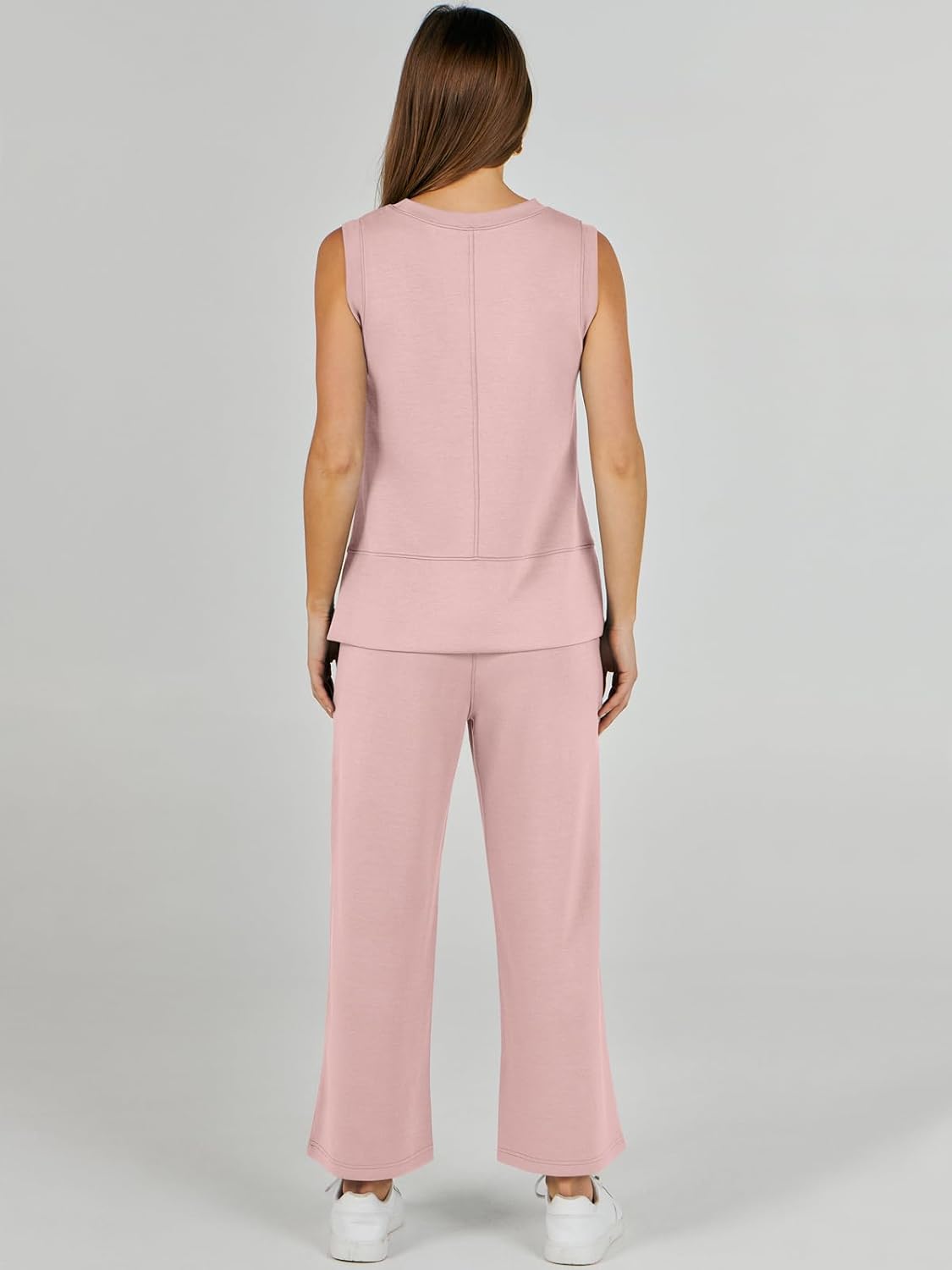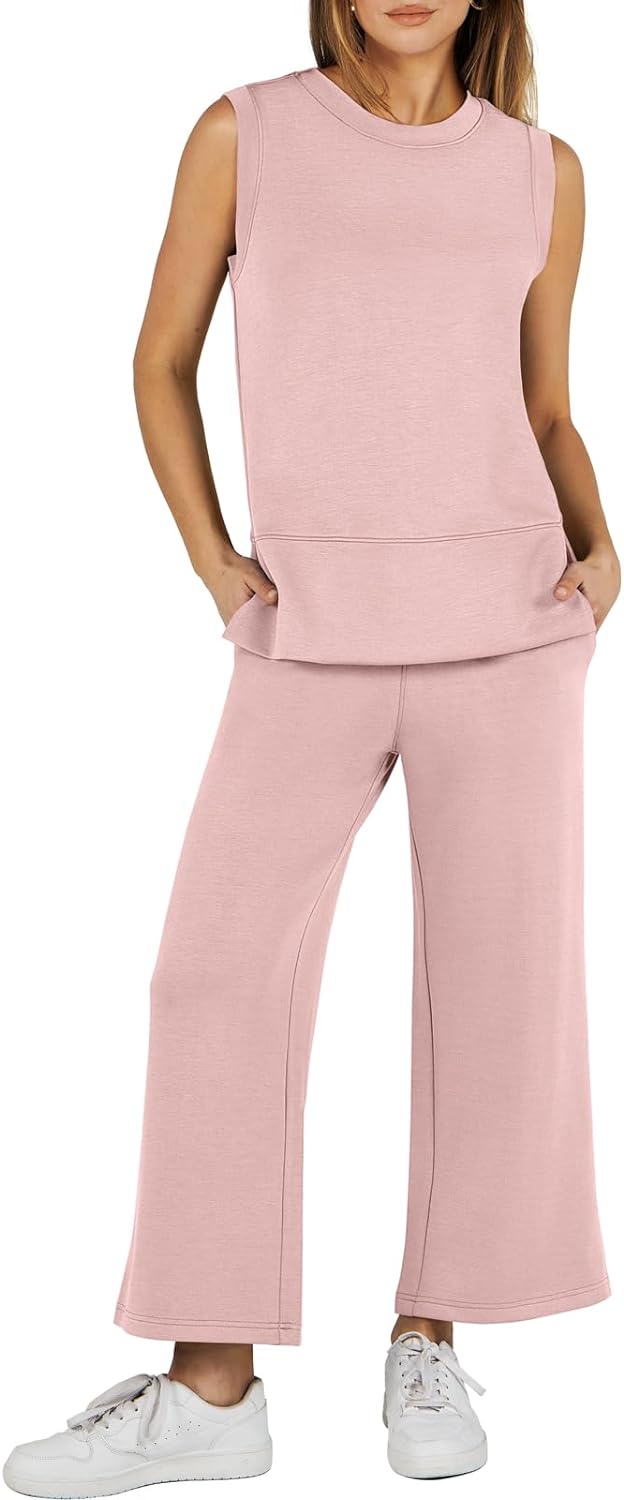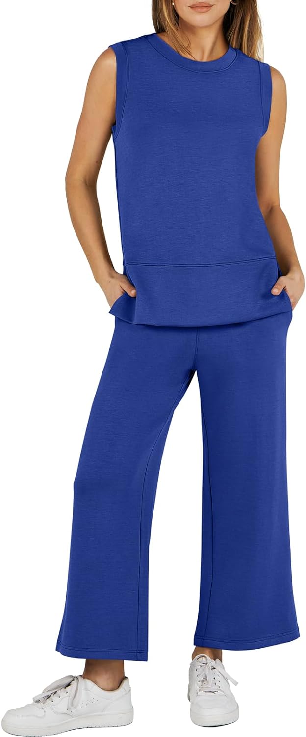 Women's 2 Piece Sets Summer Outfits Sleeveless Wide Leg Tracksuits Casual Sweat Sets Lounge Sweatsuits