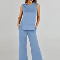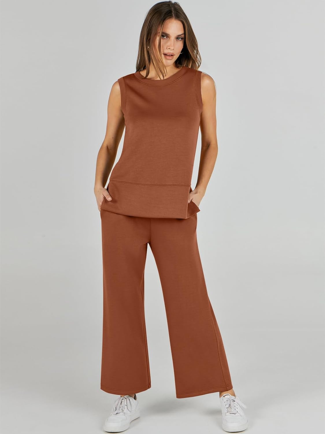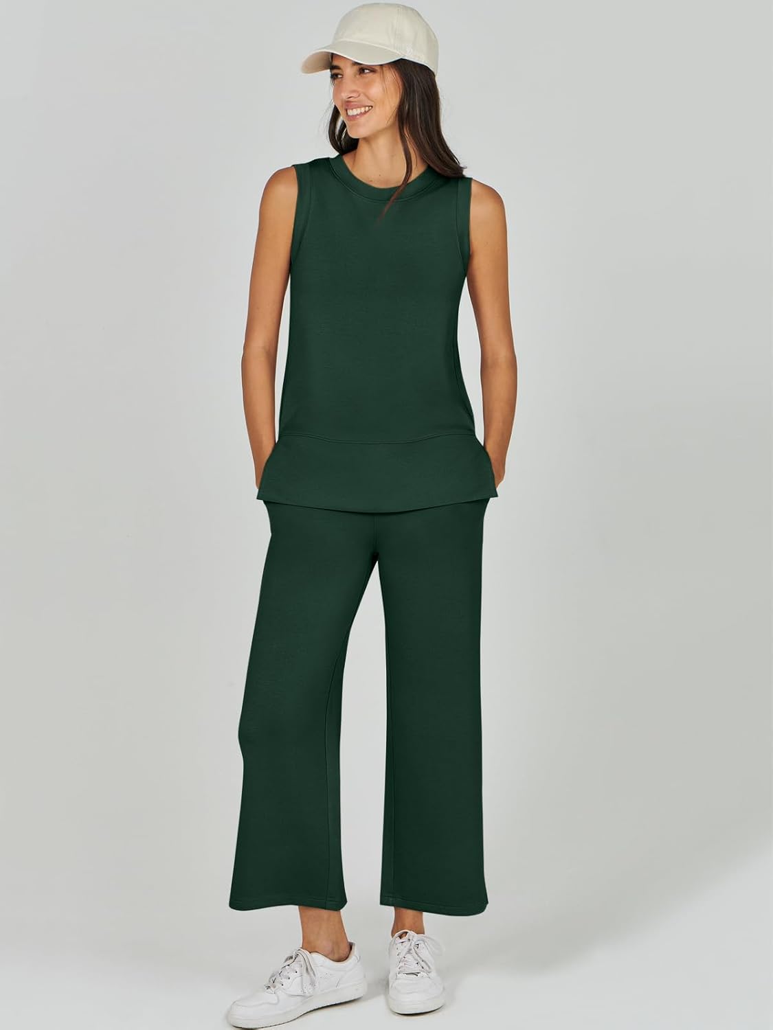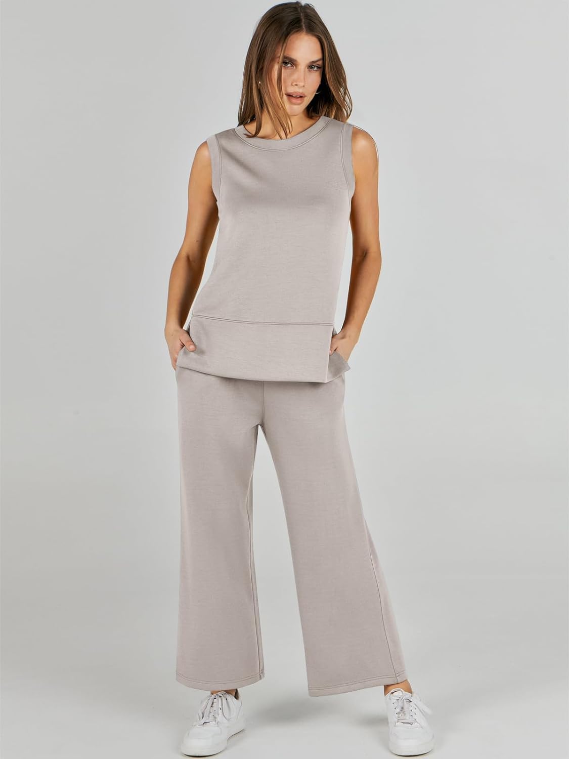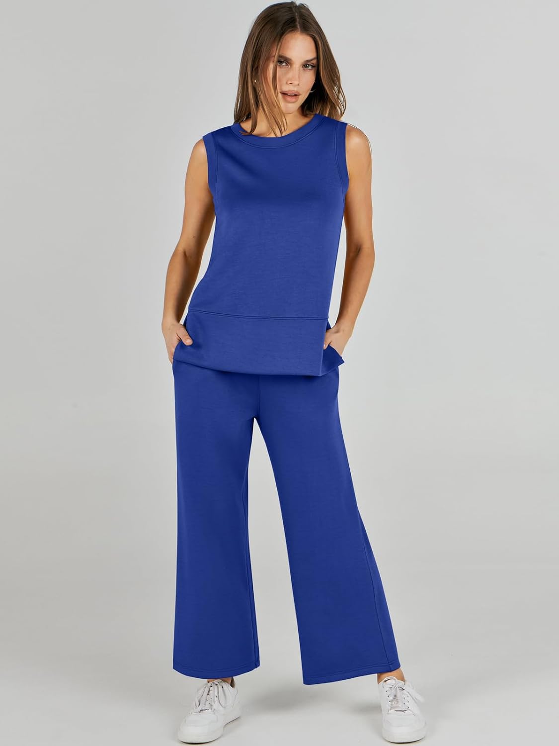 Women's 2 Piece Sets Summer Outfits Sleeveless Wide Leg Tracksuits Casual Sweat Sets Lounge Sweatsuits