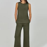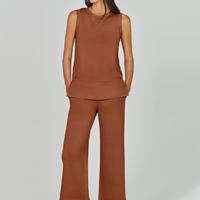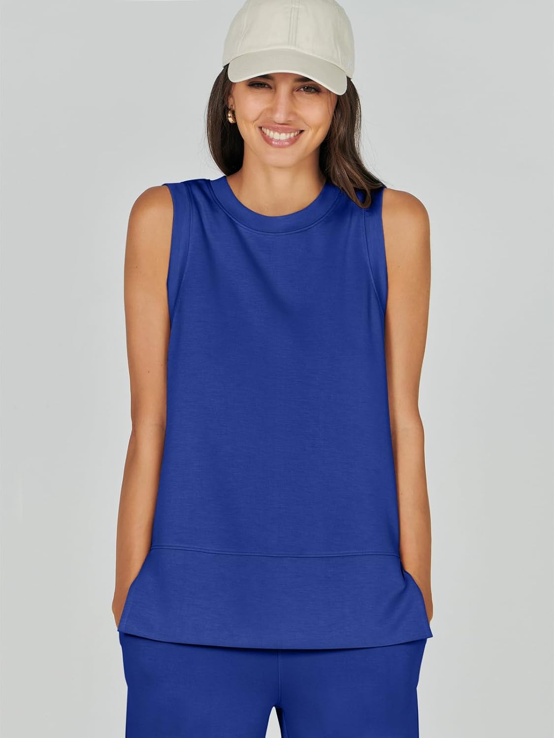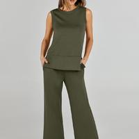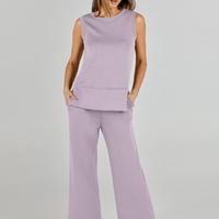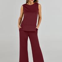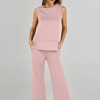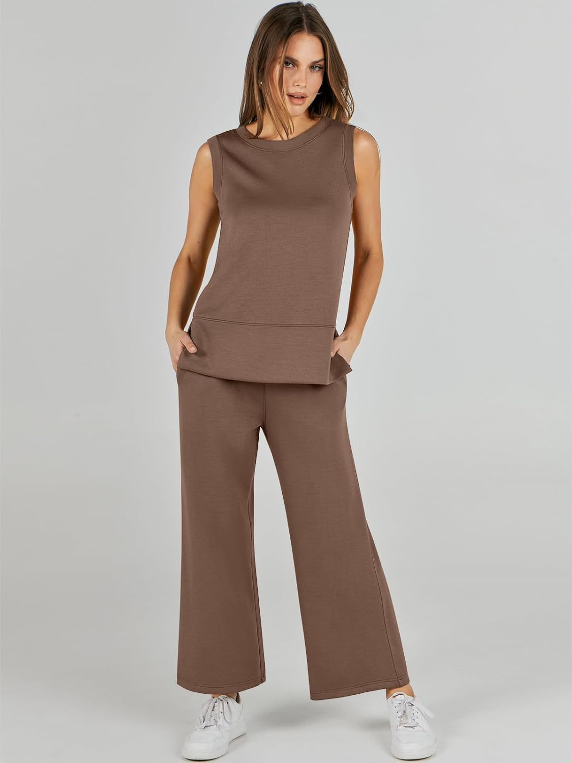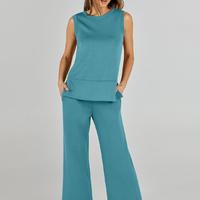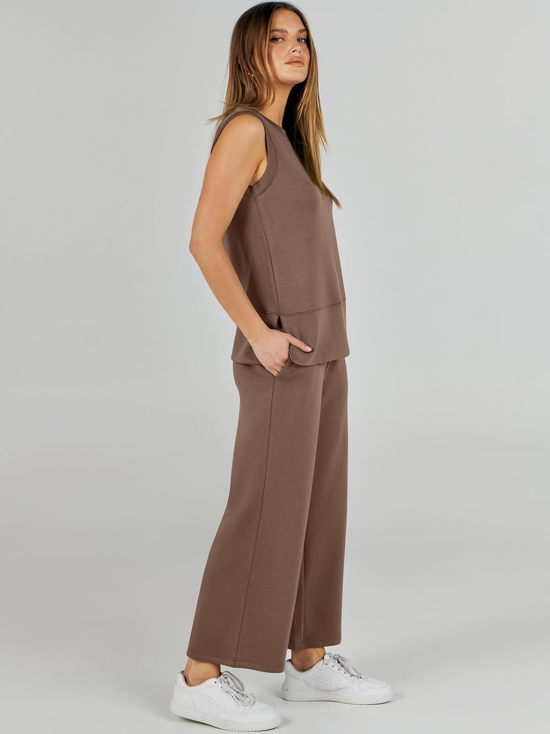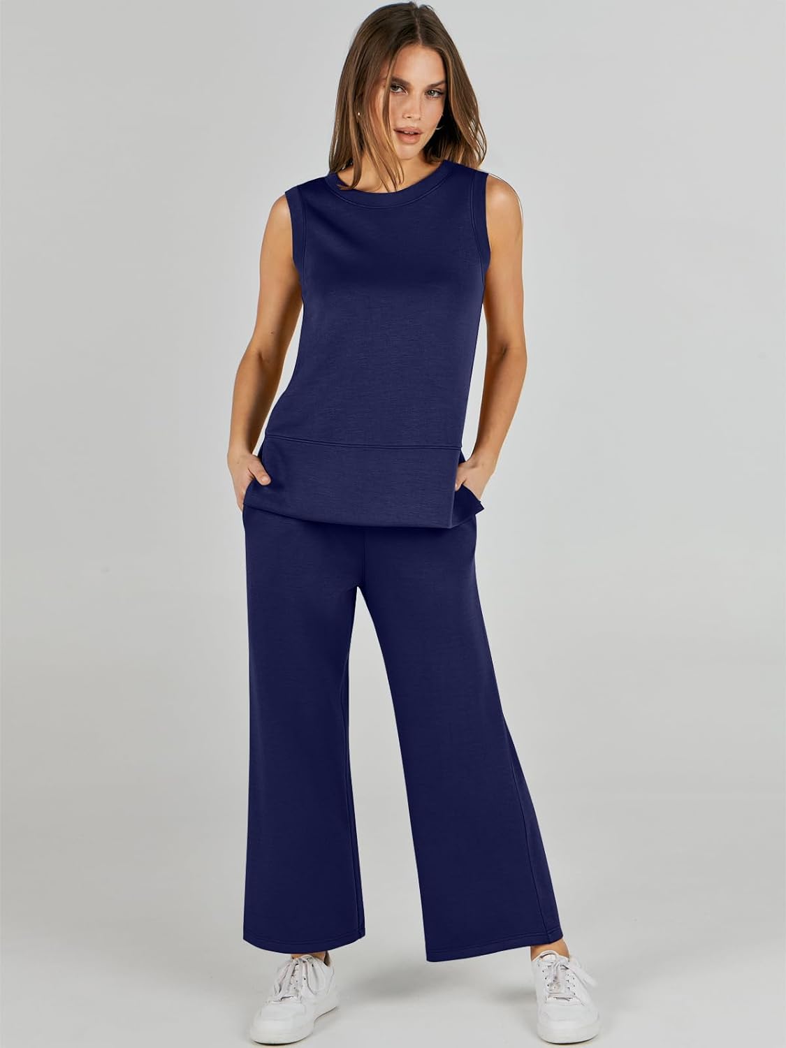 Women's 2 Piece Sets Summer Outfits Sleeveless Wide Leg Tracksuits Casual Sweat Sets Lounge Sweatsuits