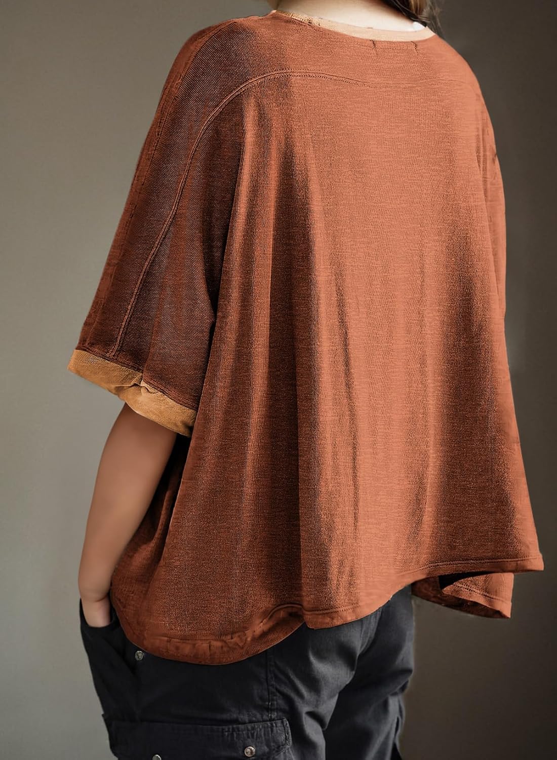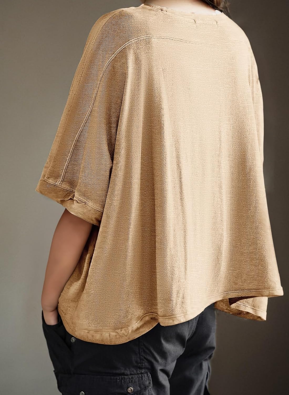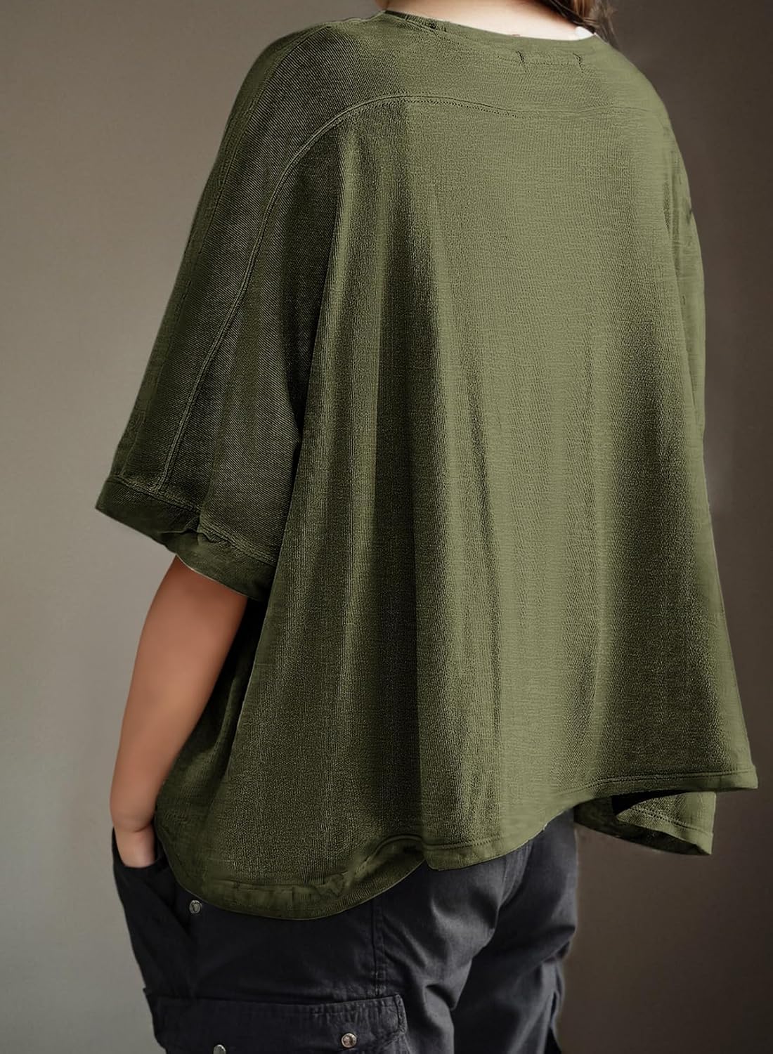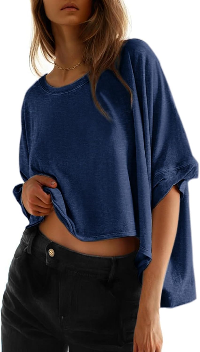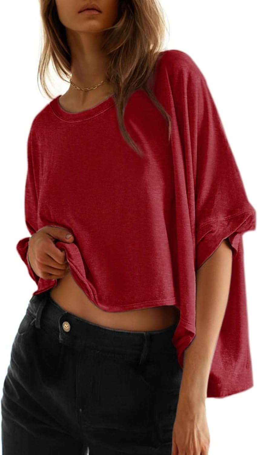 Summer Soft Short Sleeve Crew Neck Loose Tops for Women
