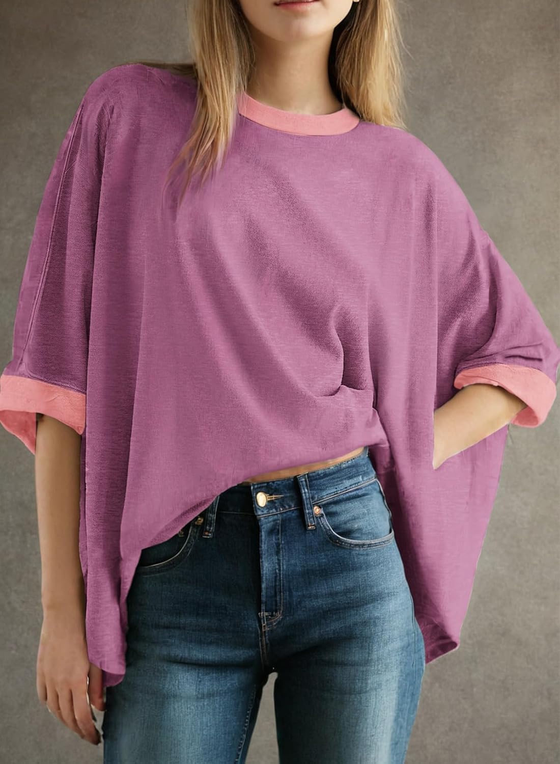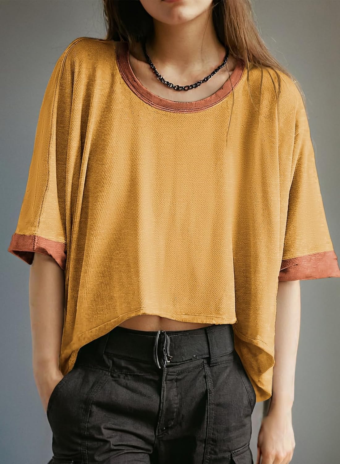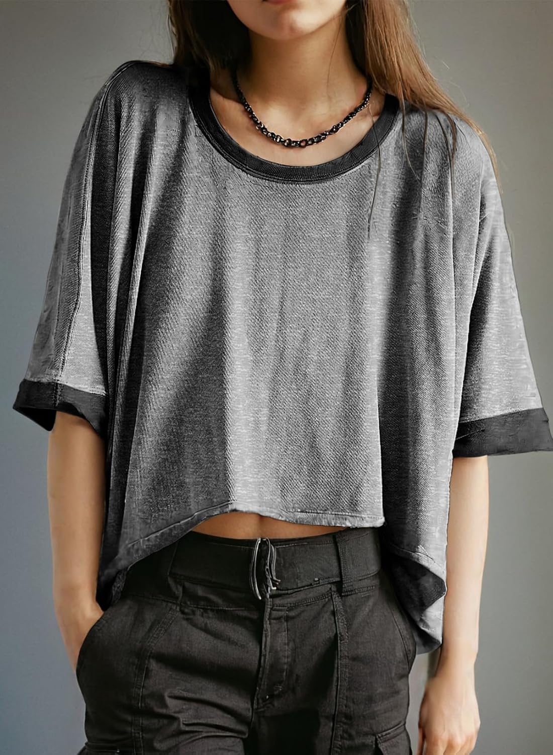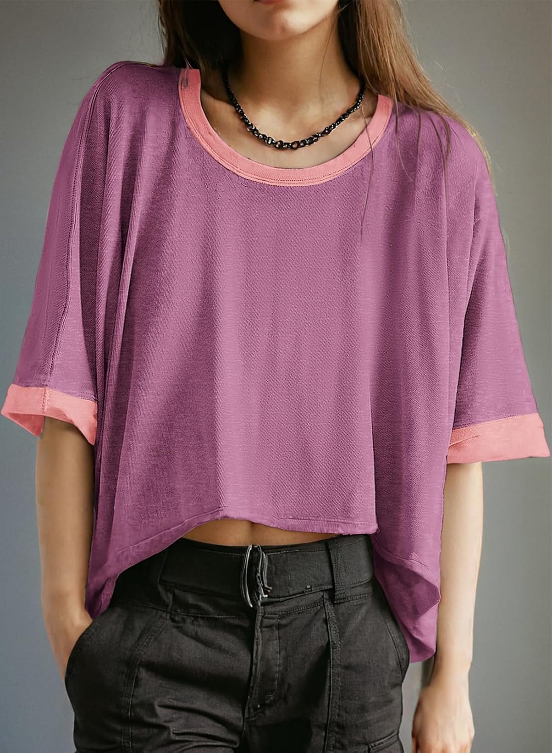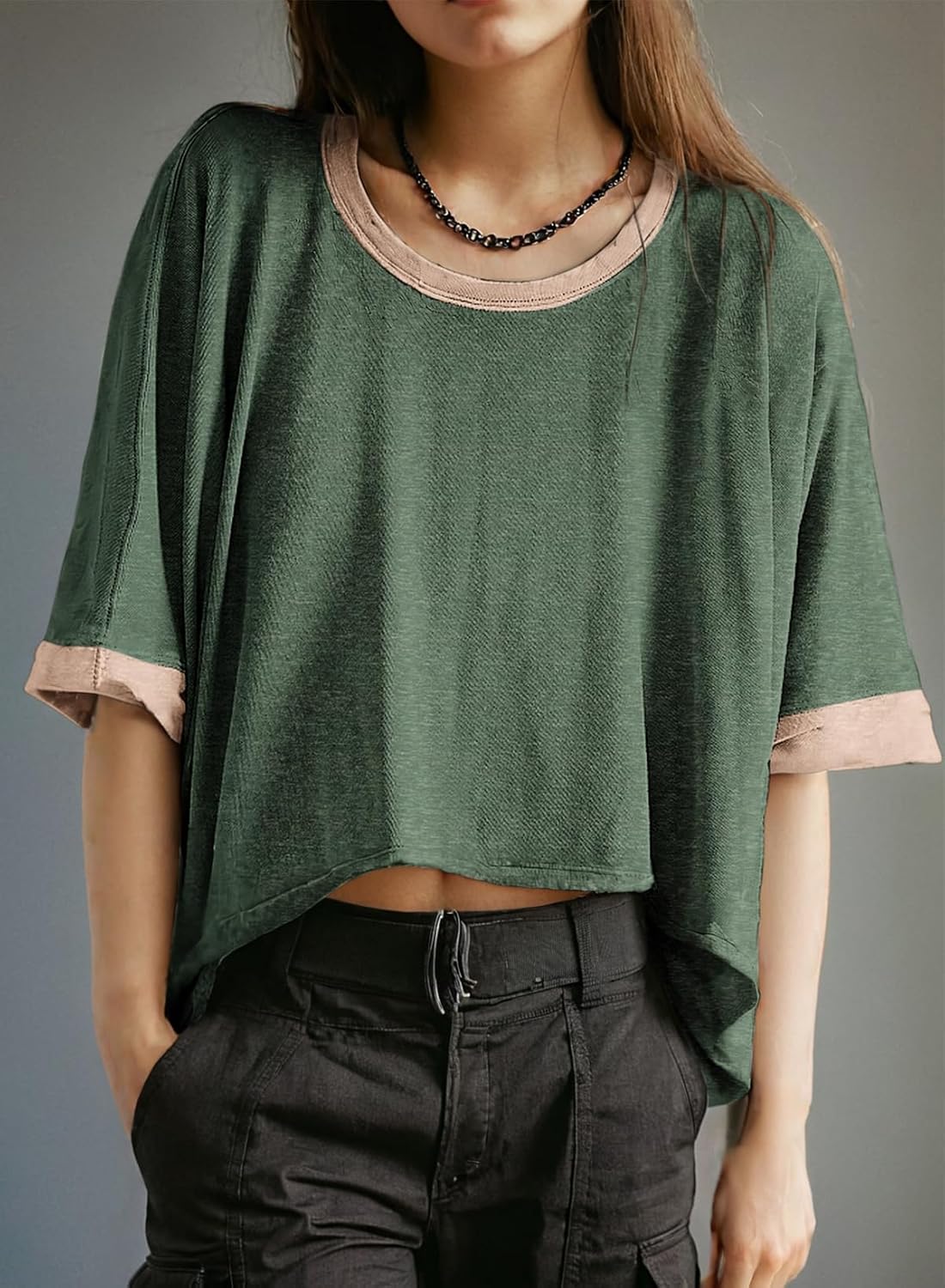 Summer Soft Short Sleeve Crew Neck Loose Tops for Women