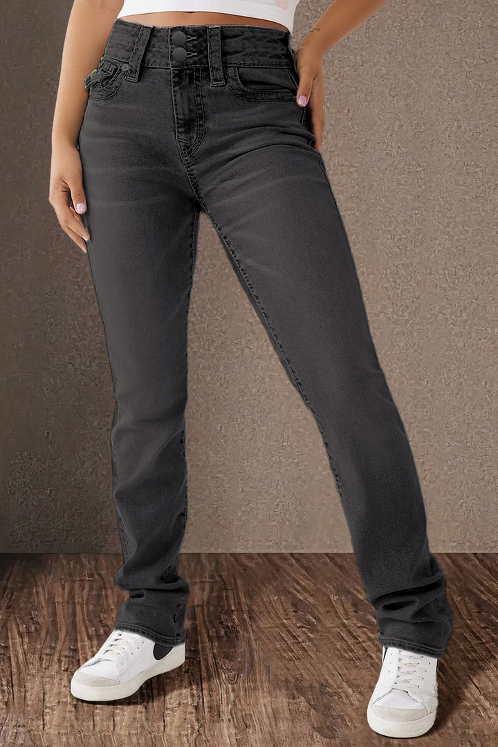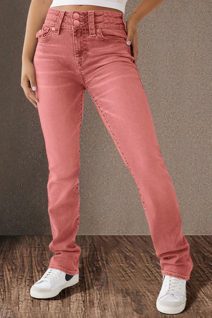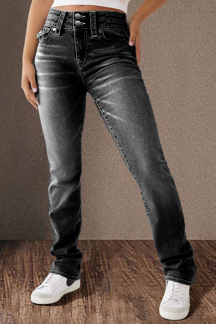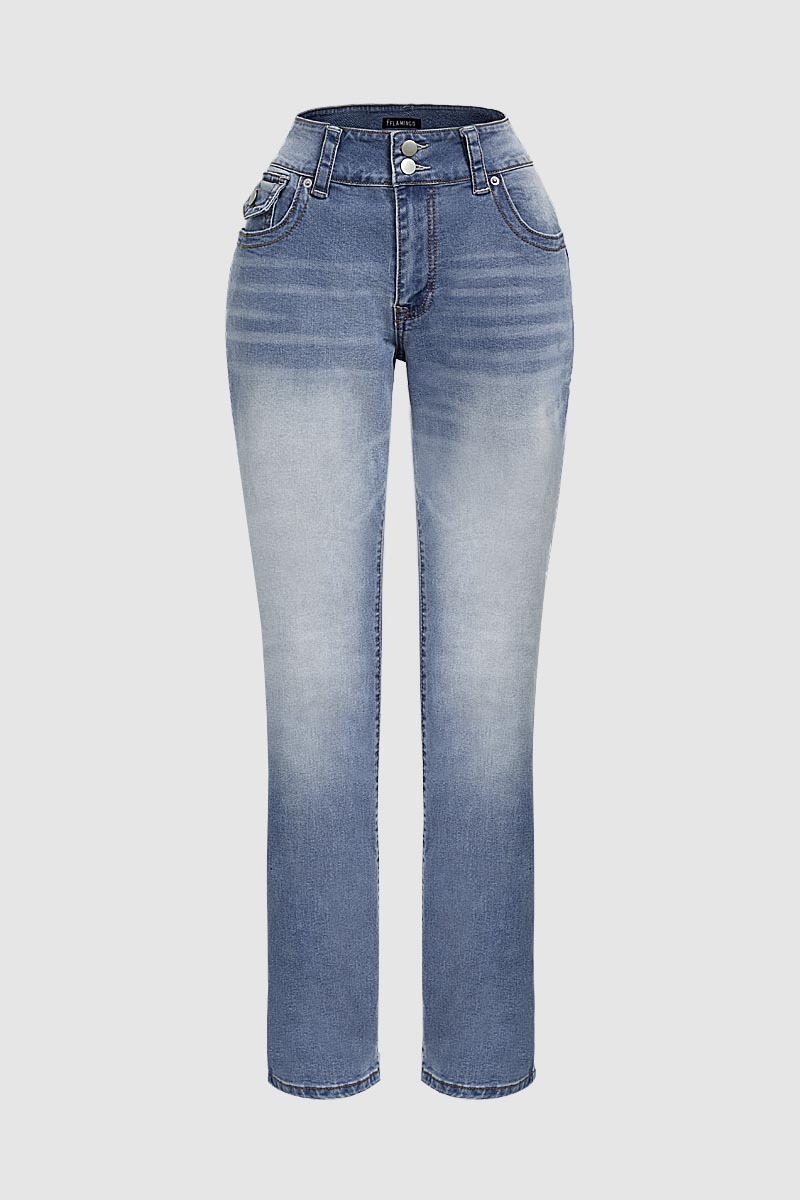 Double Button Mid Waist Straight Leg Jeans