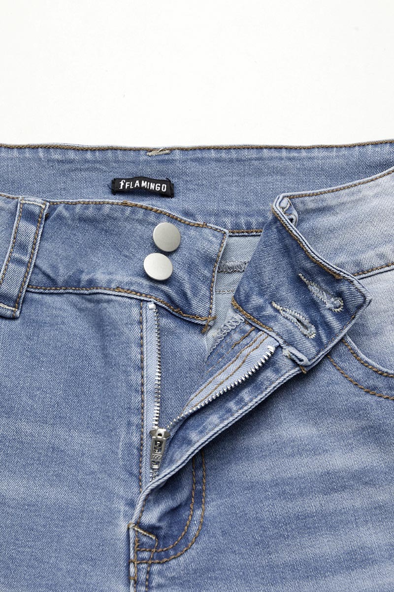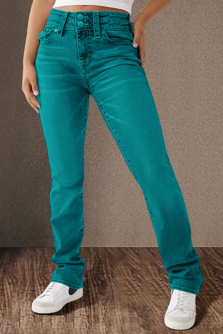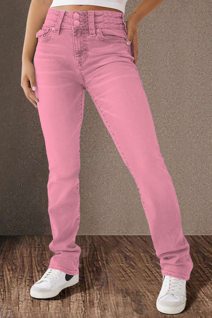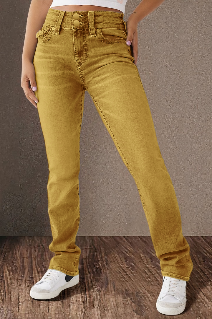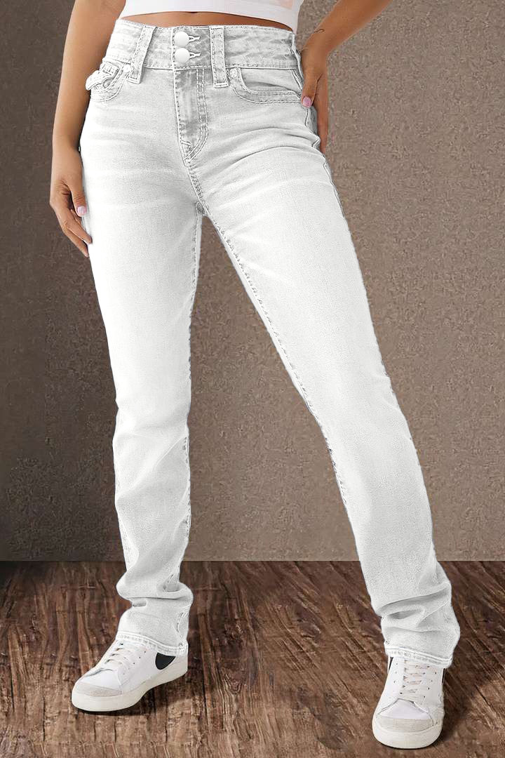 Double Button Mid Waist Straight Leg Jeans