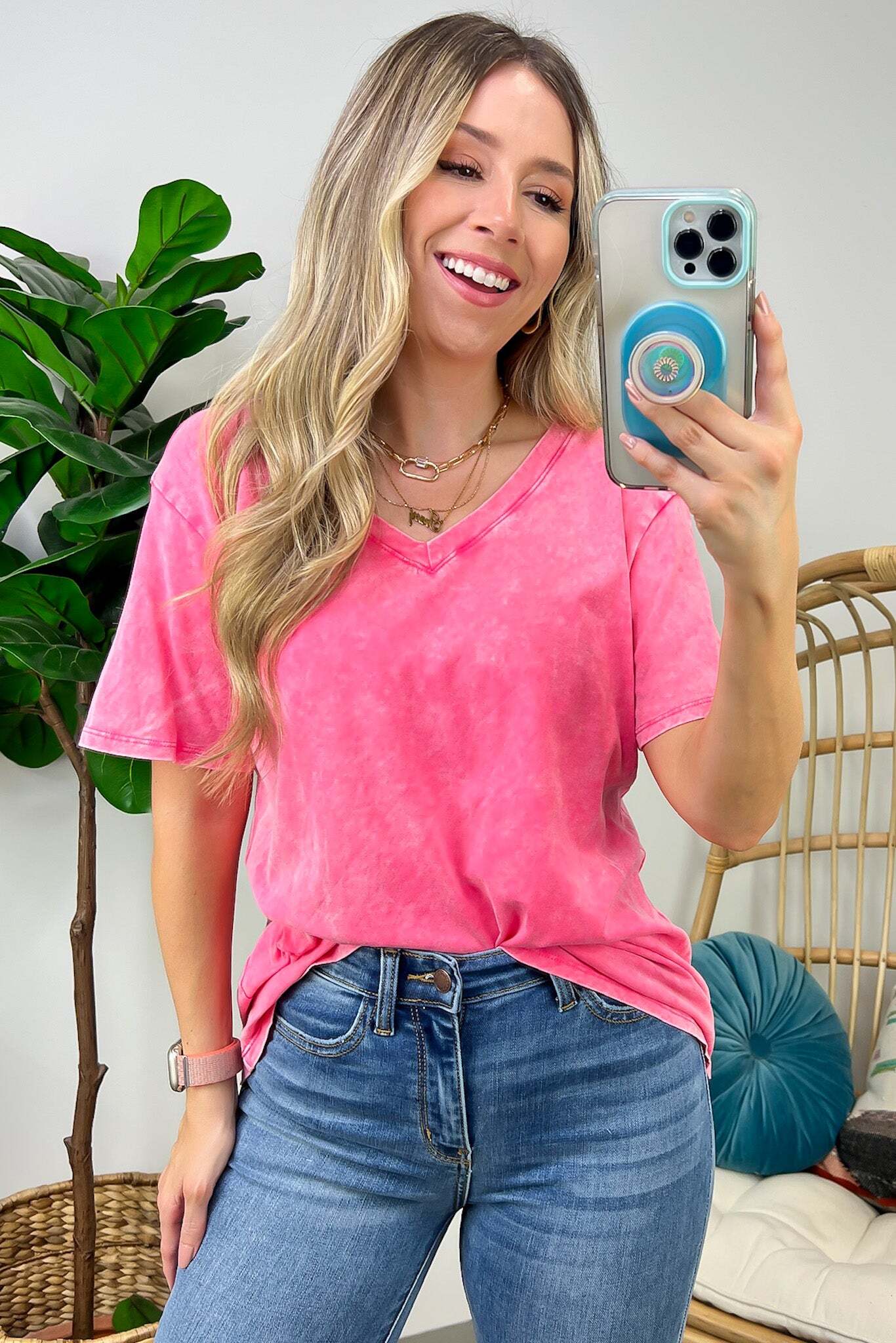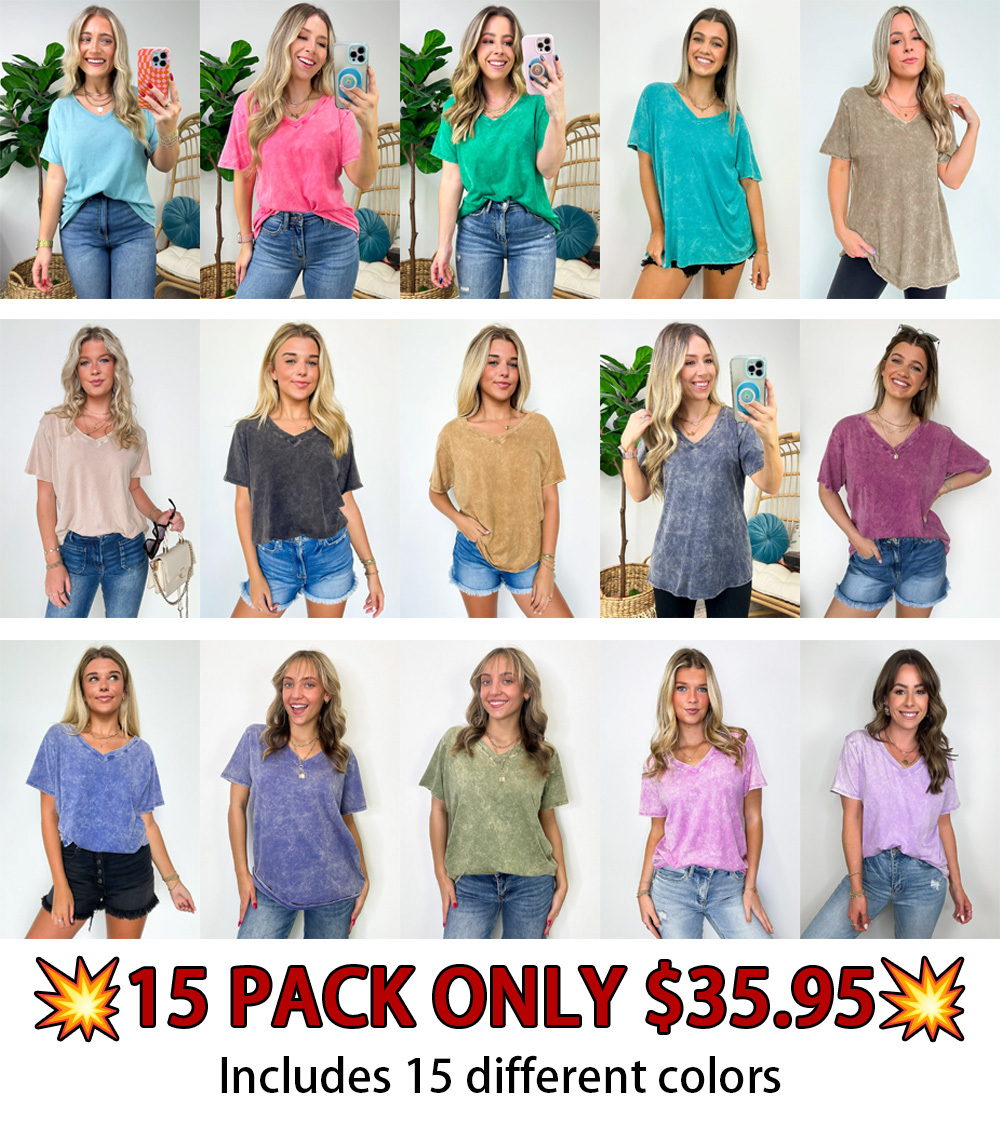• Soliel Acid Wash V-Neck Relaxed Fit Top - BACK IN STOCK