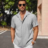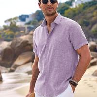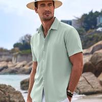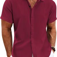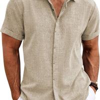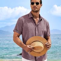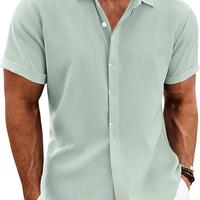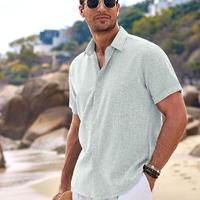 Men's Linen Shirts Short Sleeve Casual Shirts Button Down Shirt for Men Beach Summer Wedding Shirt