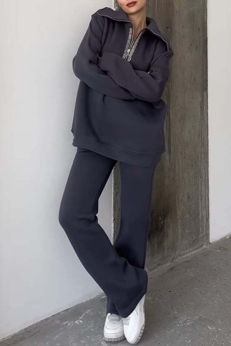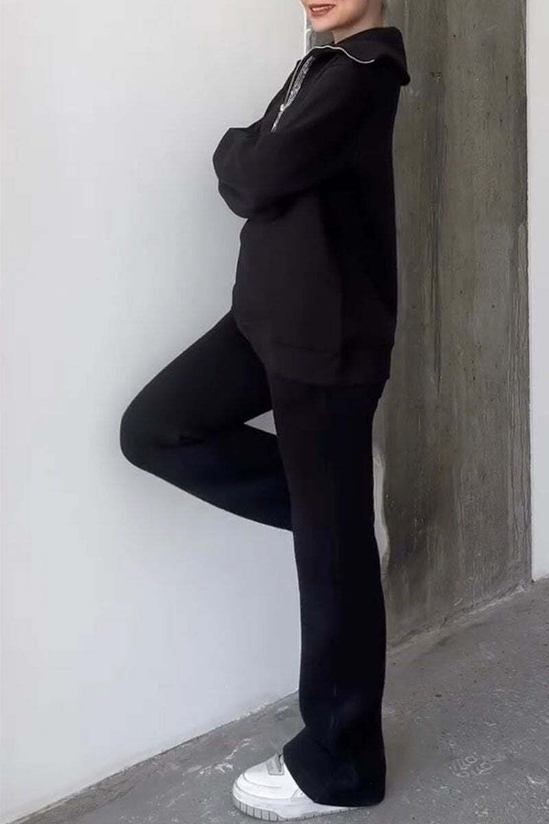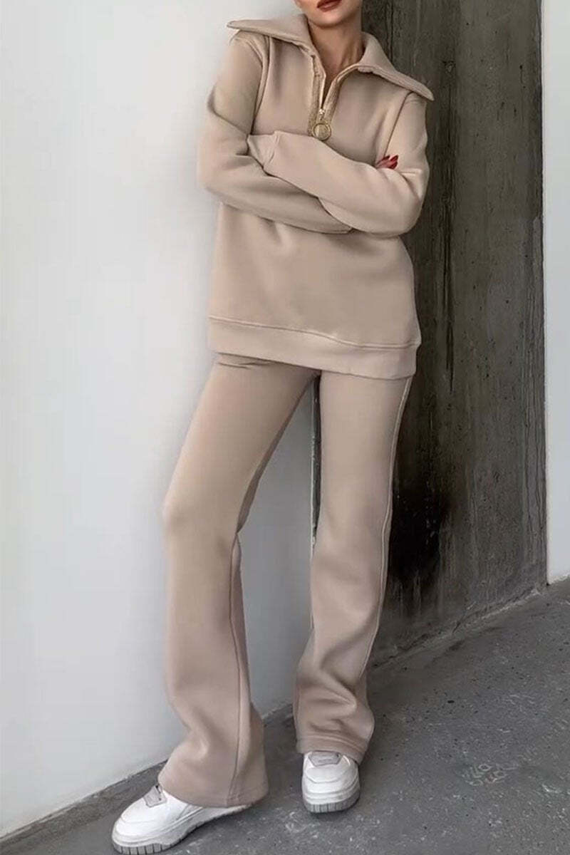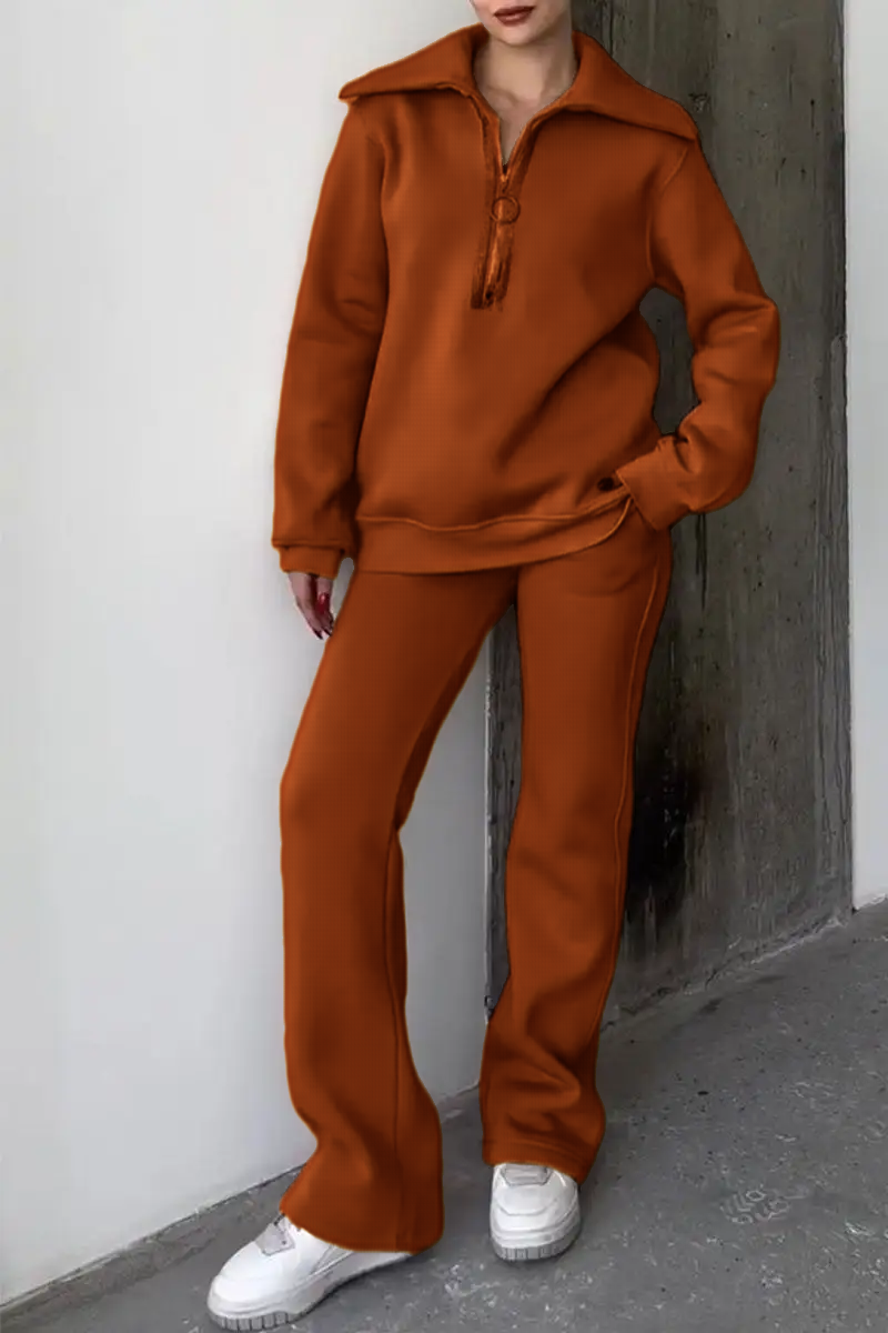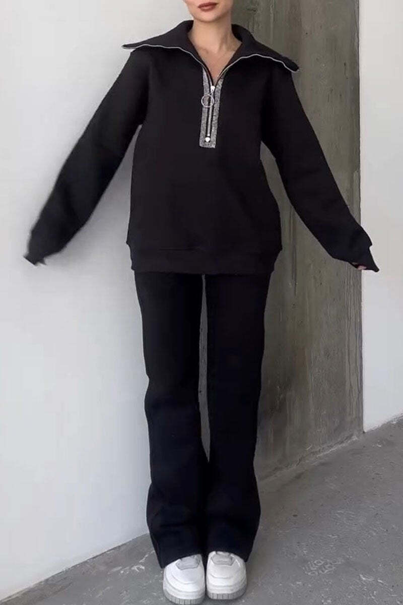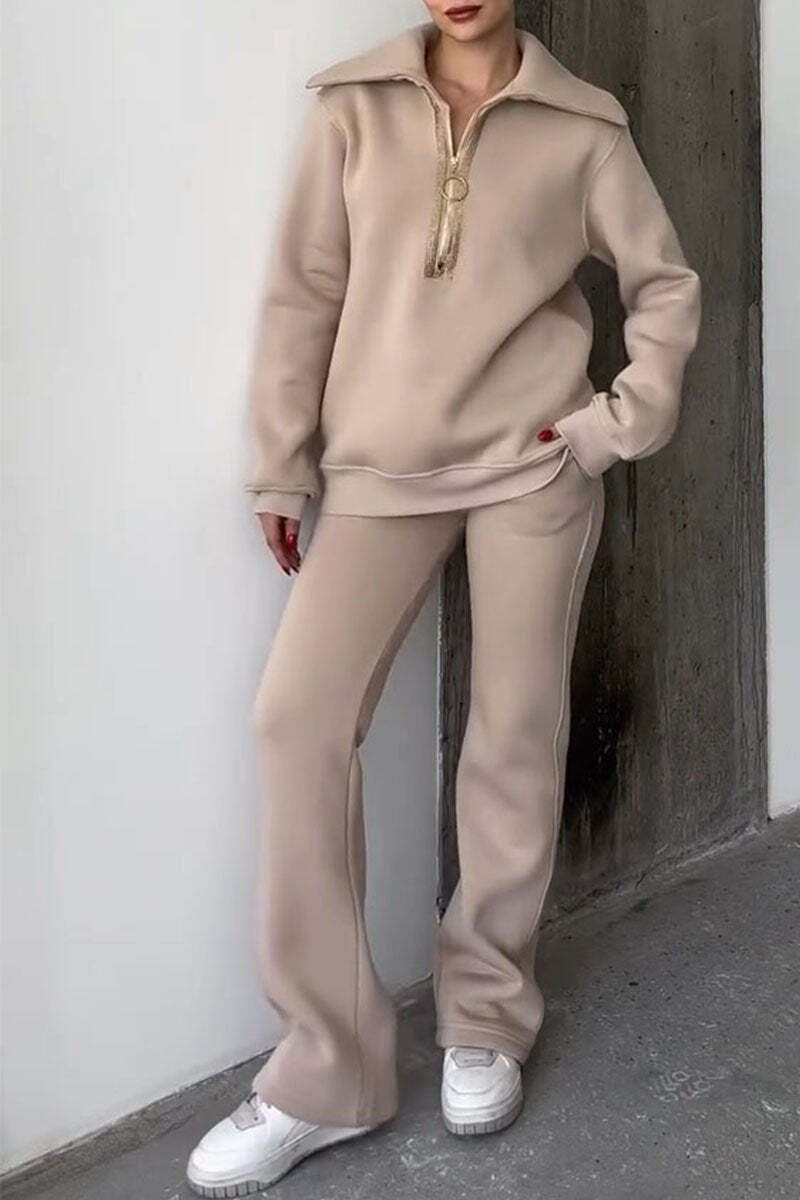 Women's Lapel Long Sleeve Sweatshirt Two Piece Set