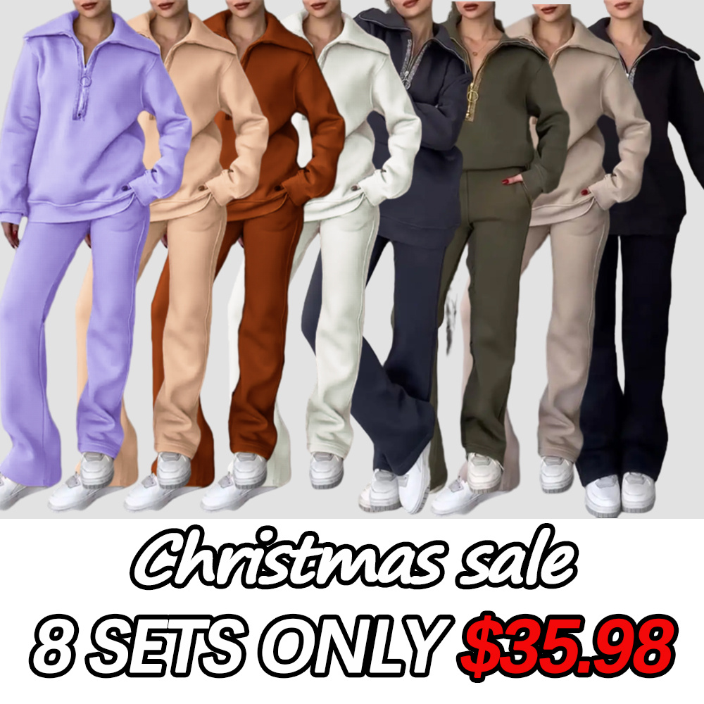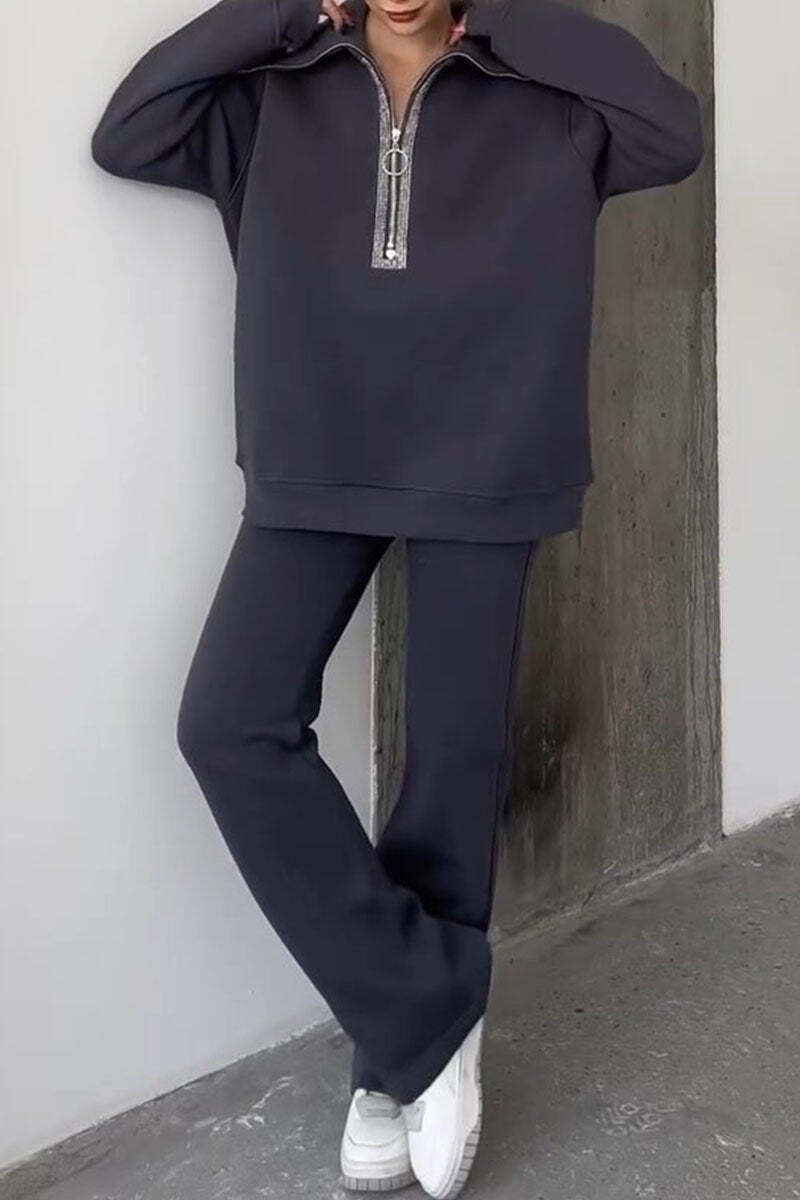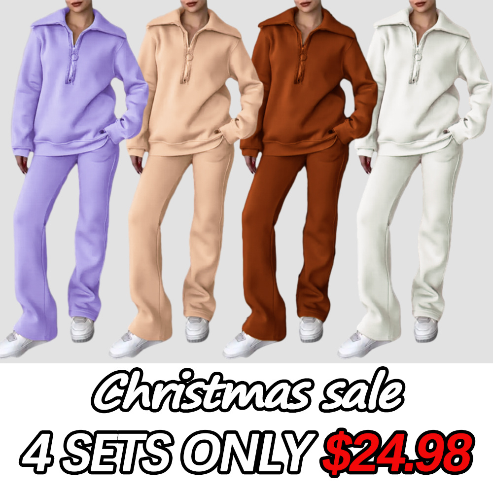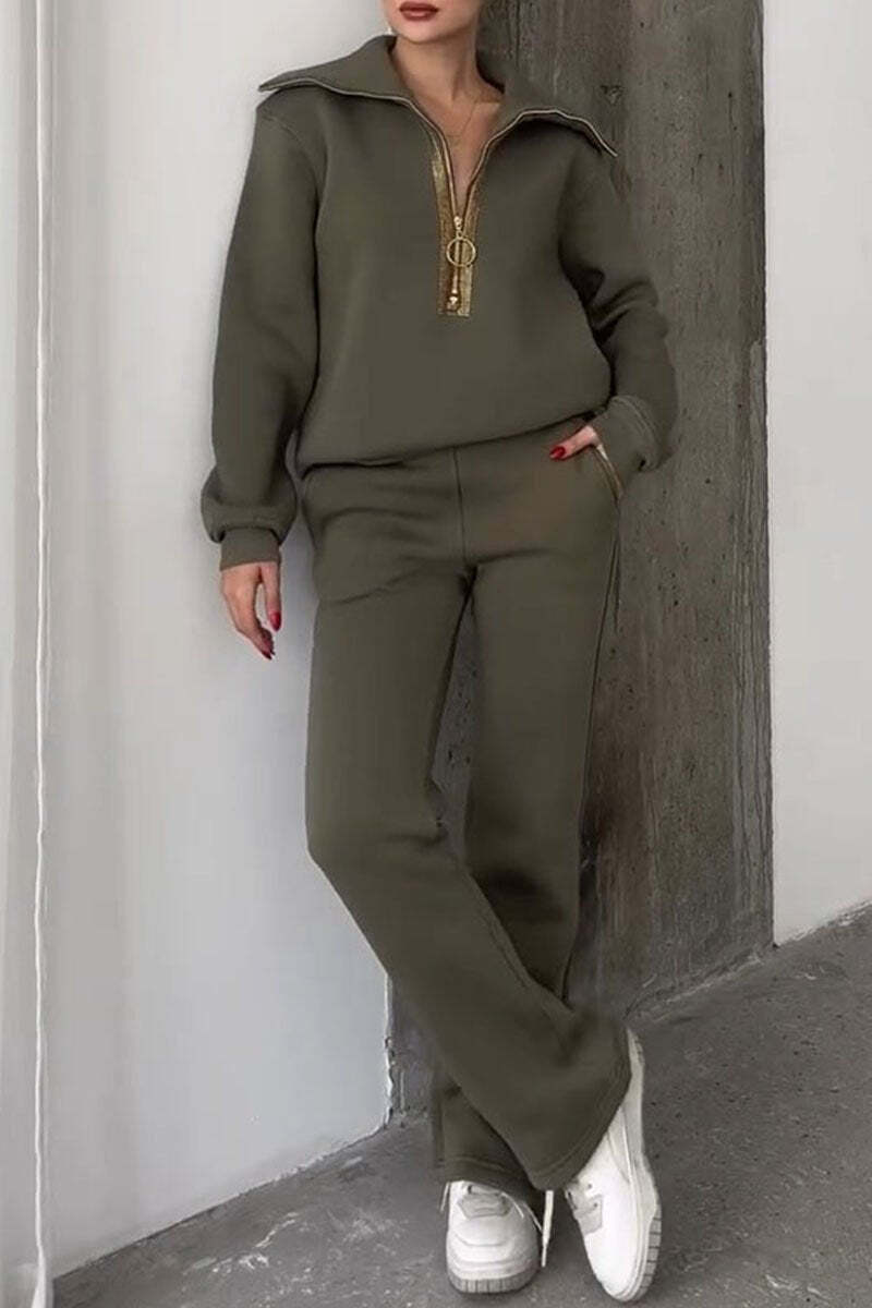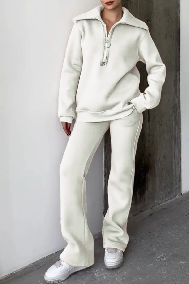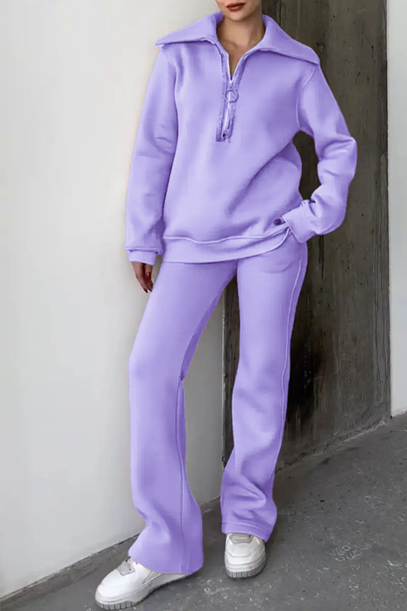 Women's Lapel Long Sleeve Sweatshirt Two Piece Set