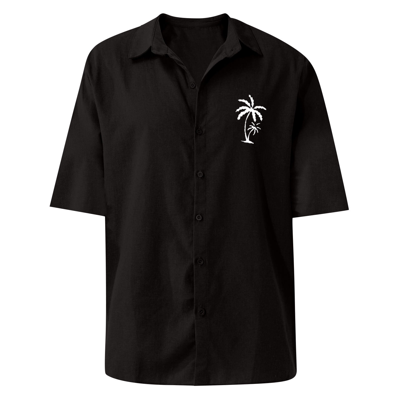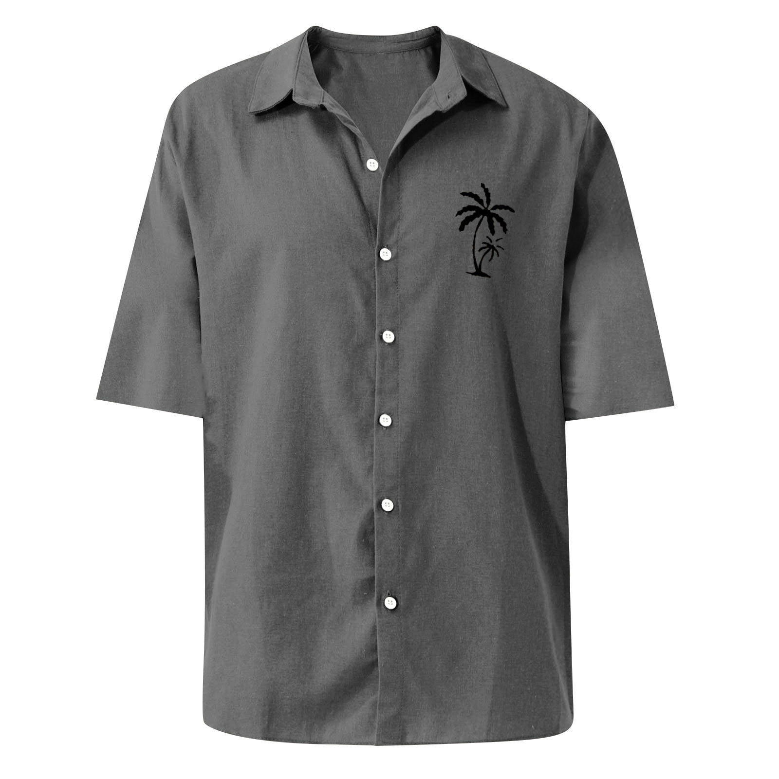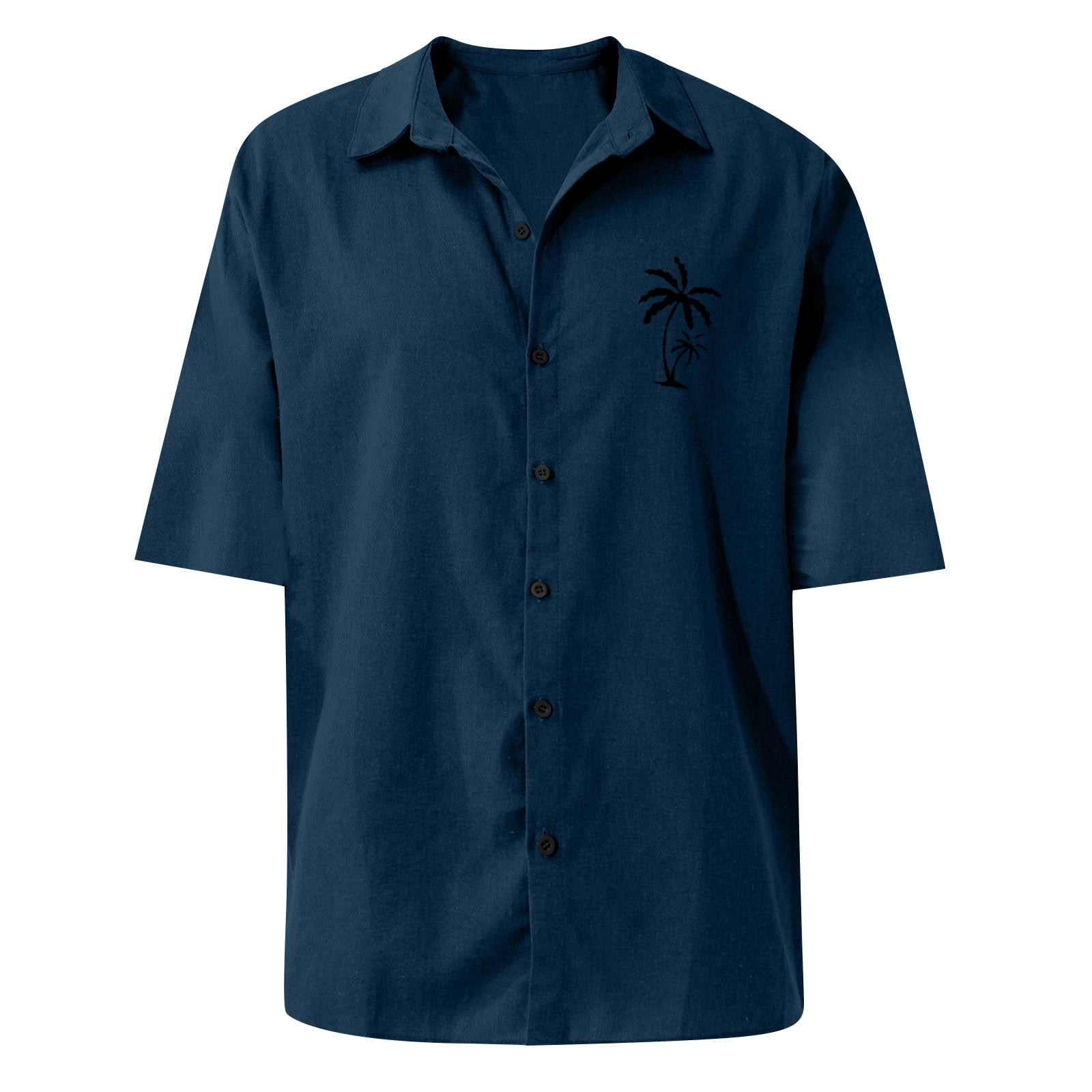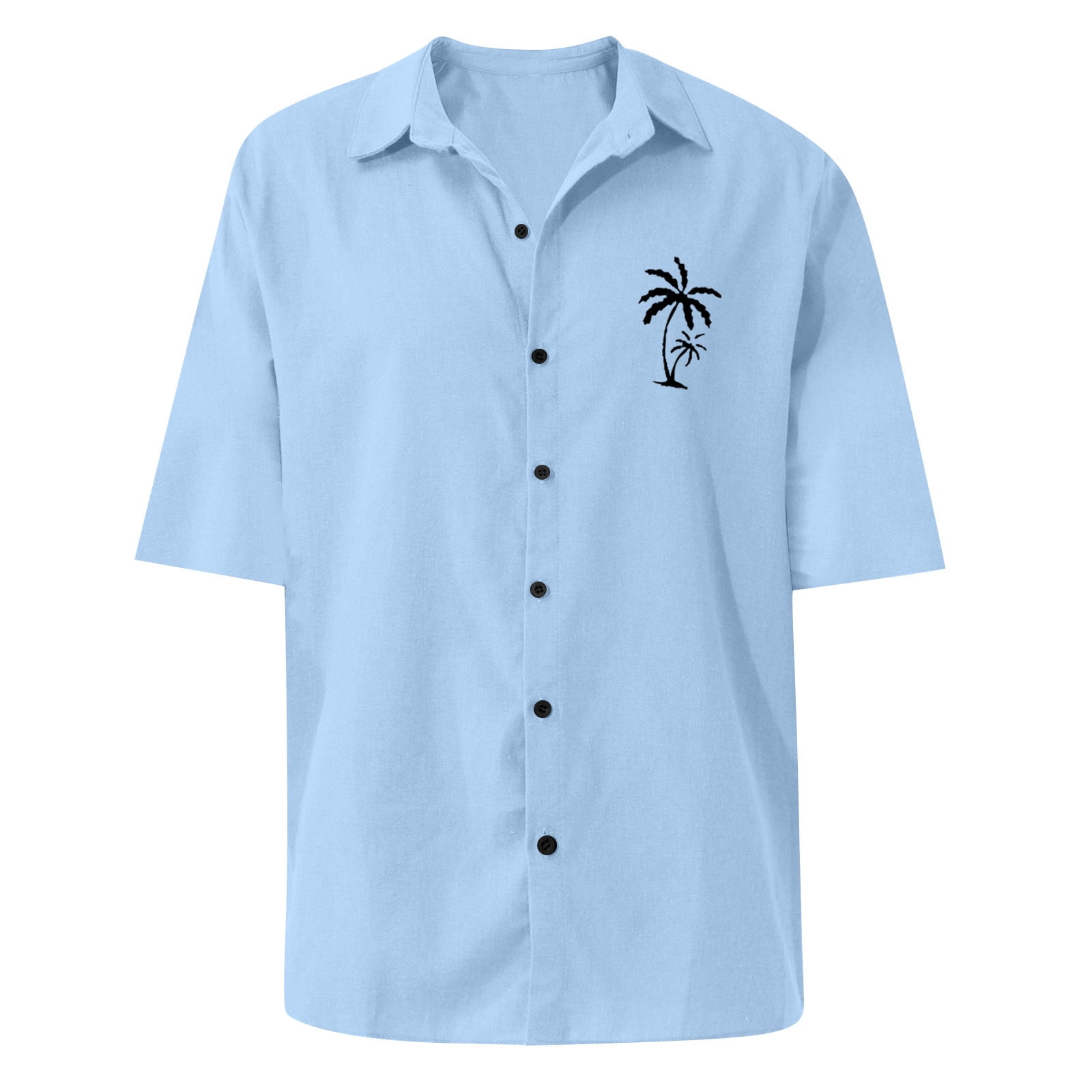 Basic Summer Men Polo Shirt Collar Short Sleeved Beach Men's Polo Shirts, Coconut Tree Print Cardigan Loose Work Shirts for Men Polyester Button Down Polo Shirt Blue XL