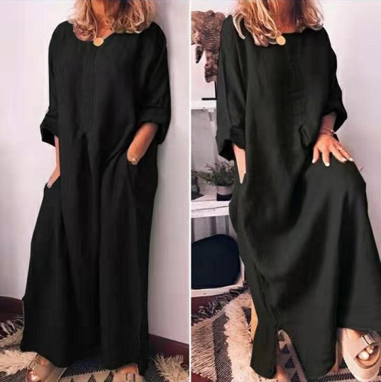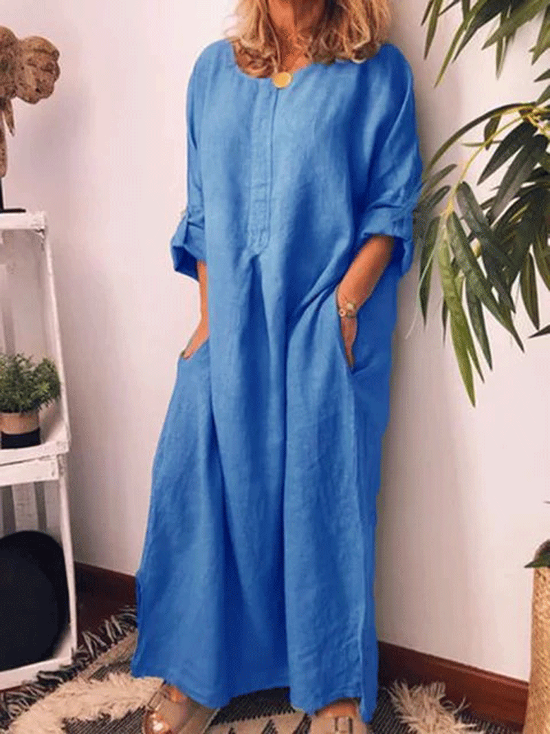 Cotton And Linen Solid Color Loose Kaftan Maxidress