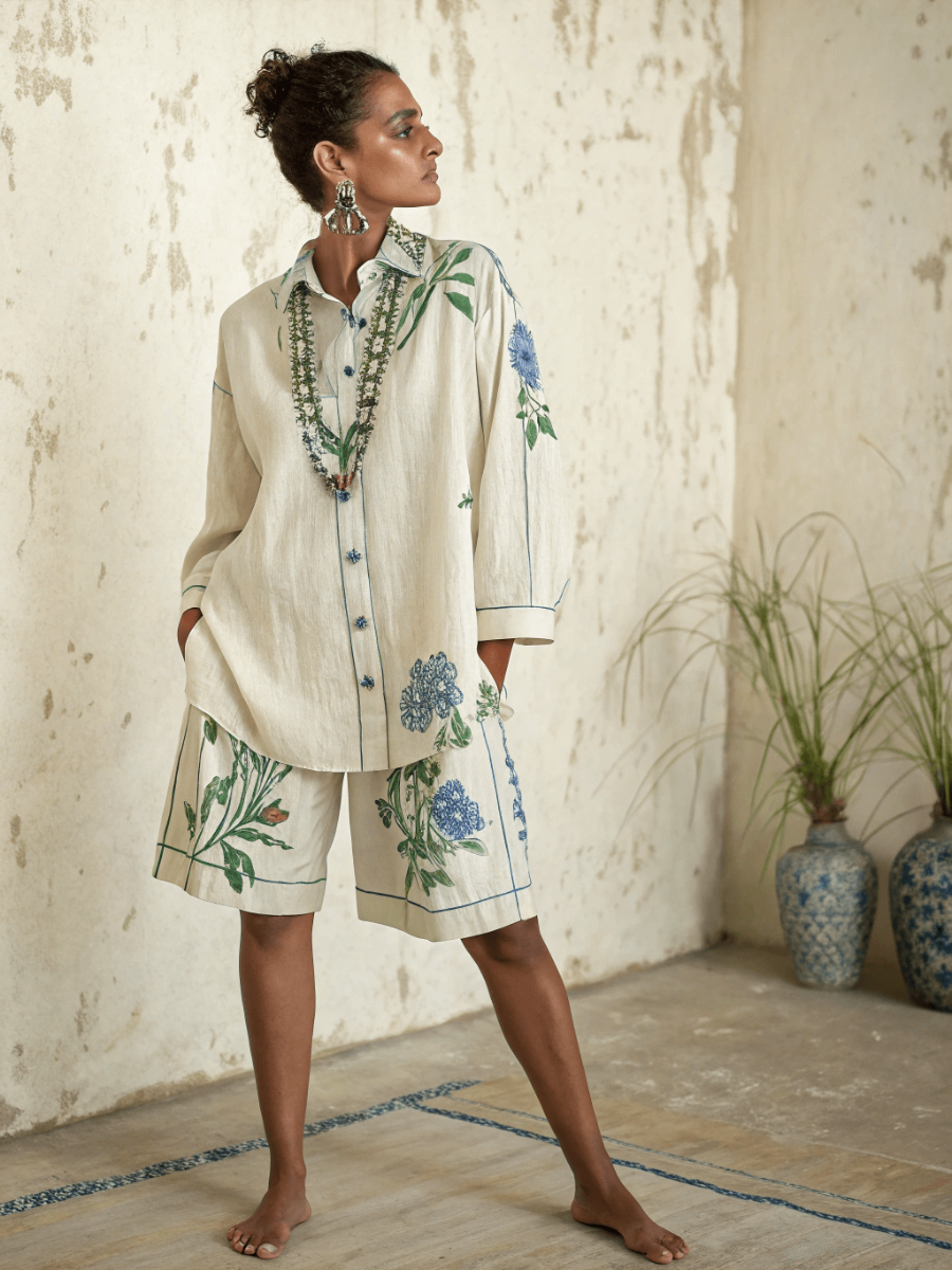 Kimono Torii Dawn Linen Tie-strap Top and trousers Two Piece Set