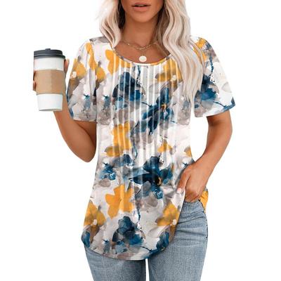 • 🌹Great Features: t shirts for women loose fit,womens tops dressy casual,adorable pleated front design,scooped neck short sleeve blouses for women,cute summer tops with curved hem,available in floral and solid colors