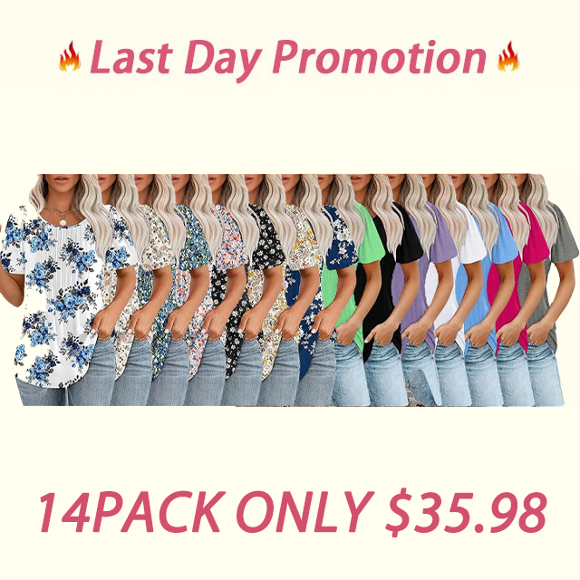 • 🔥Last Day Promotion🔥Womens T Shirts Short Sleeve Pleated Dressy Casual Scooped Neck Summer Tops Blouses