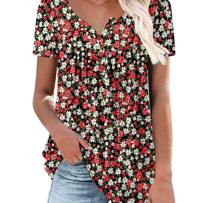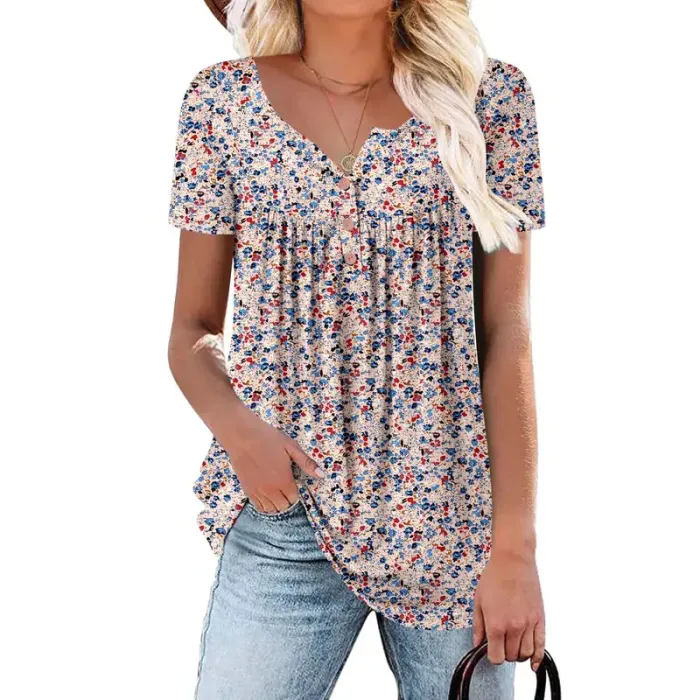 • ⏰Hot Sale-Women's Summer Pleated Printed Short-Sleeves