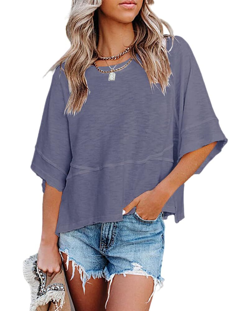 This cute summer pullover shirt is easy to pair with jeans, shorts, yoga pants, leggings, skirts, paired with heels, flat sandals and more. The fabric is skin-friendly and breathable. Perfect for a hot summer day.