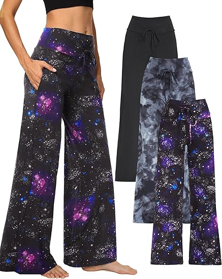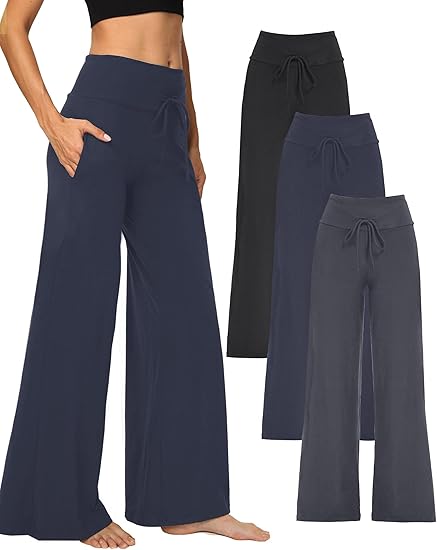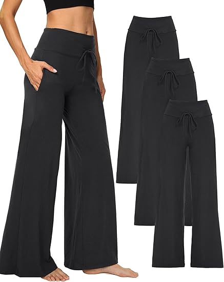 • 🔥Flash Sale⚡1/3 Pack Wide Leg Yoga Pants for Women, Comfy Lounge Pajama Sweatpants Loose Causal Palazzo with Pockets