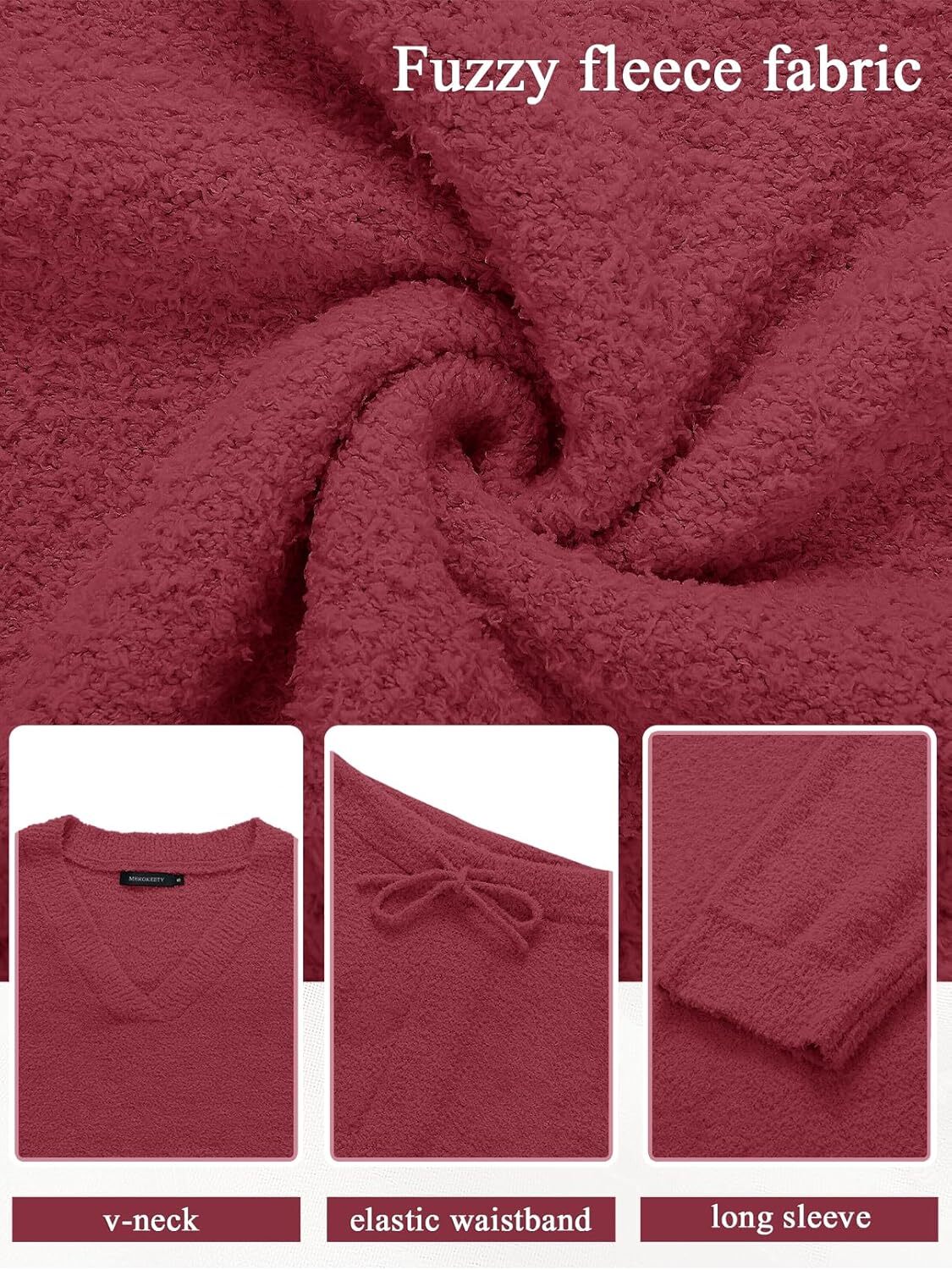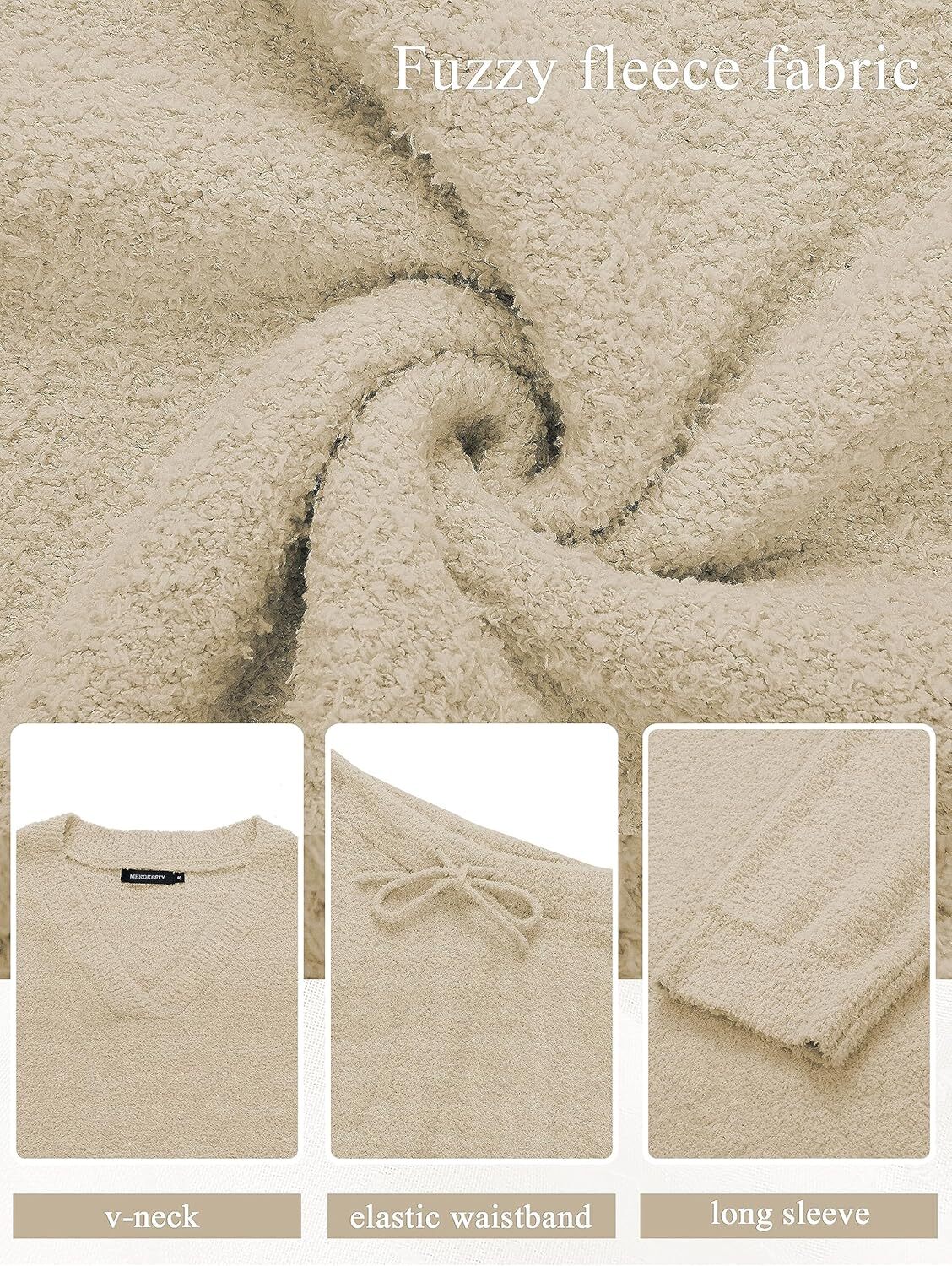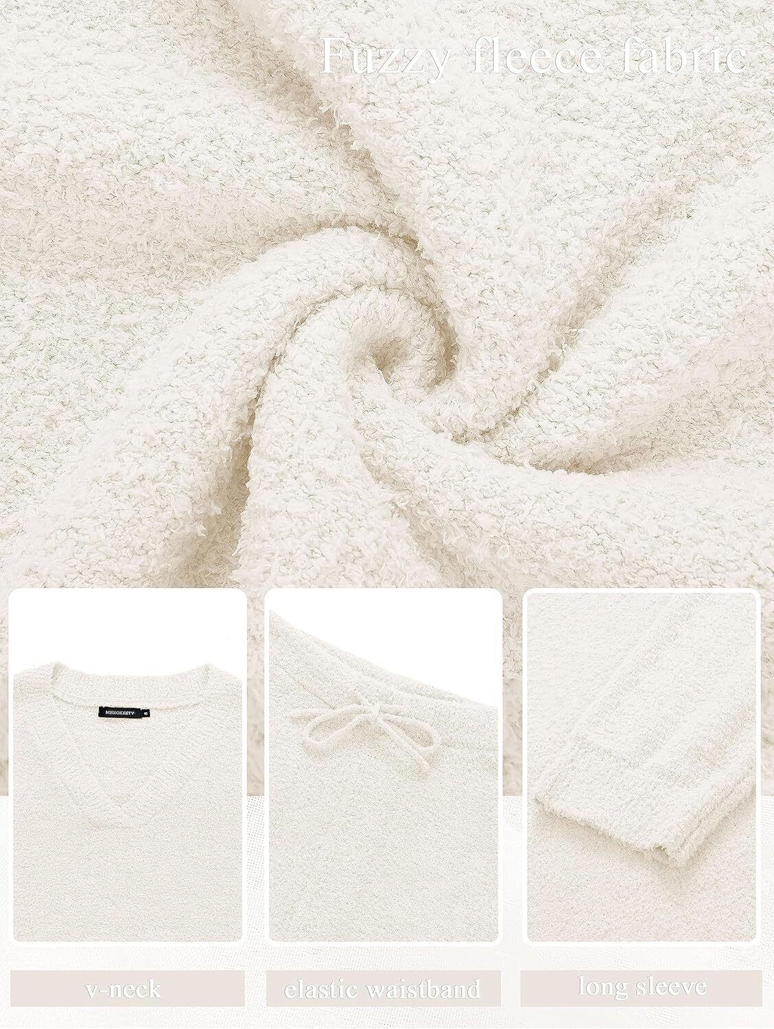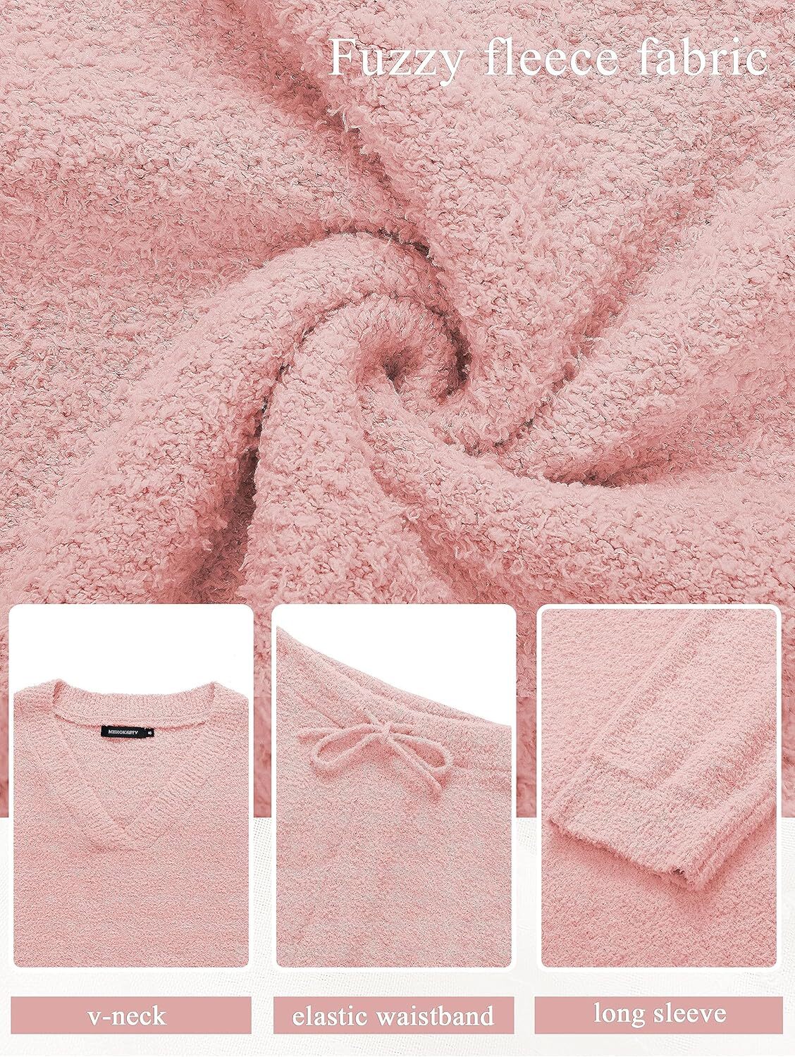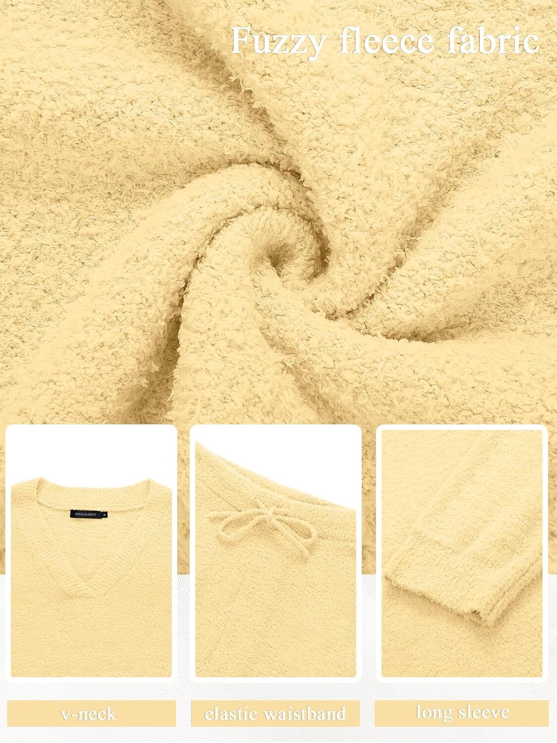 Casual Winter Pajama Set Long Sleeve V Neck Fuzzy Fleece Knitted Pj Sweater Sets