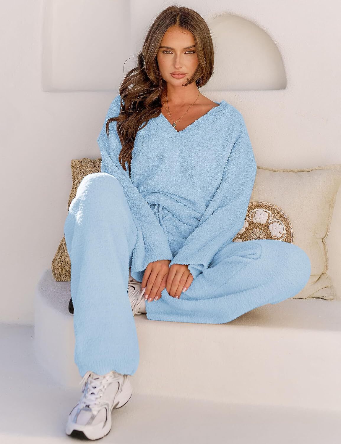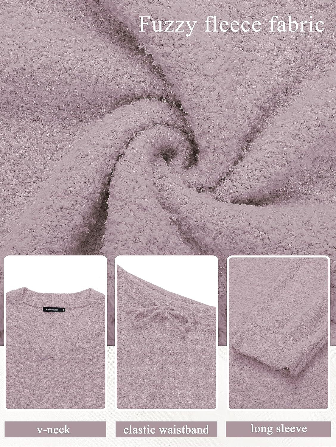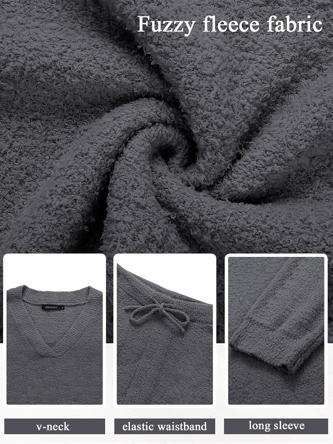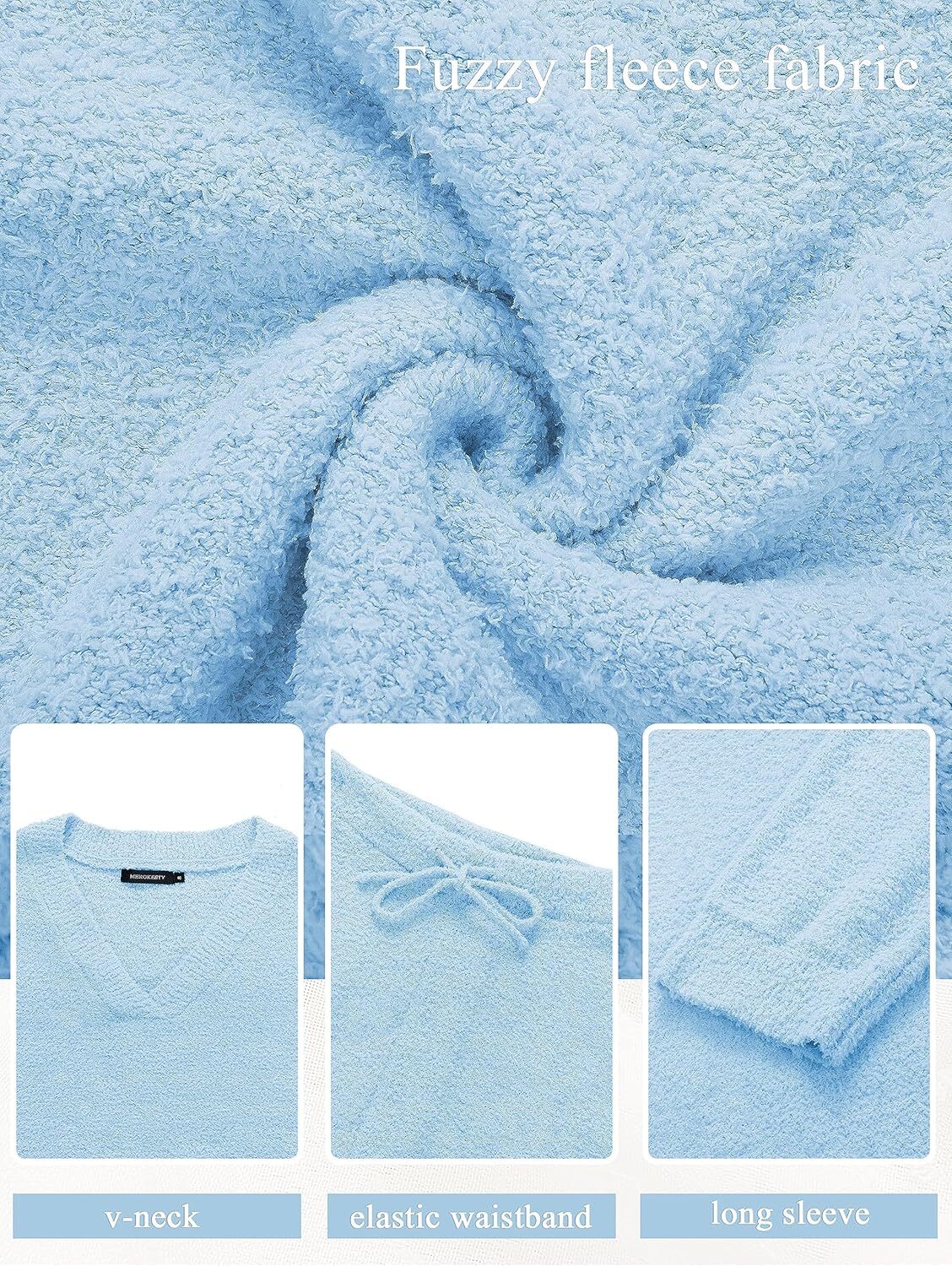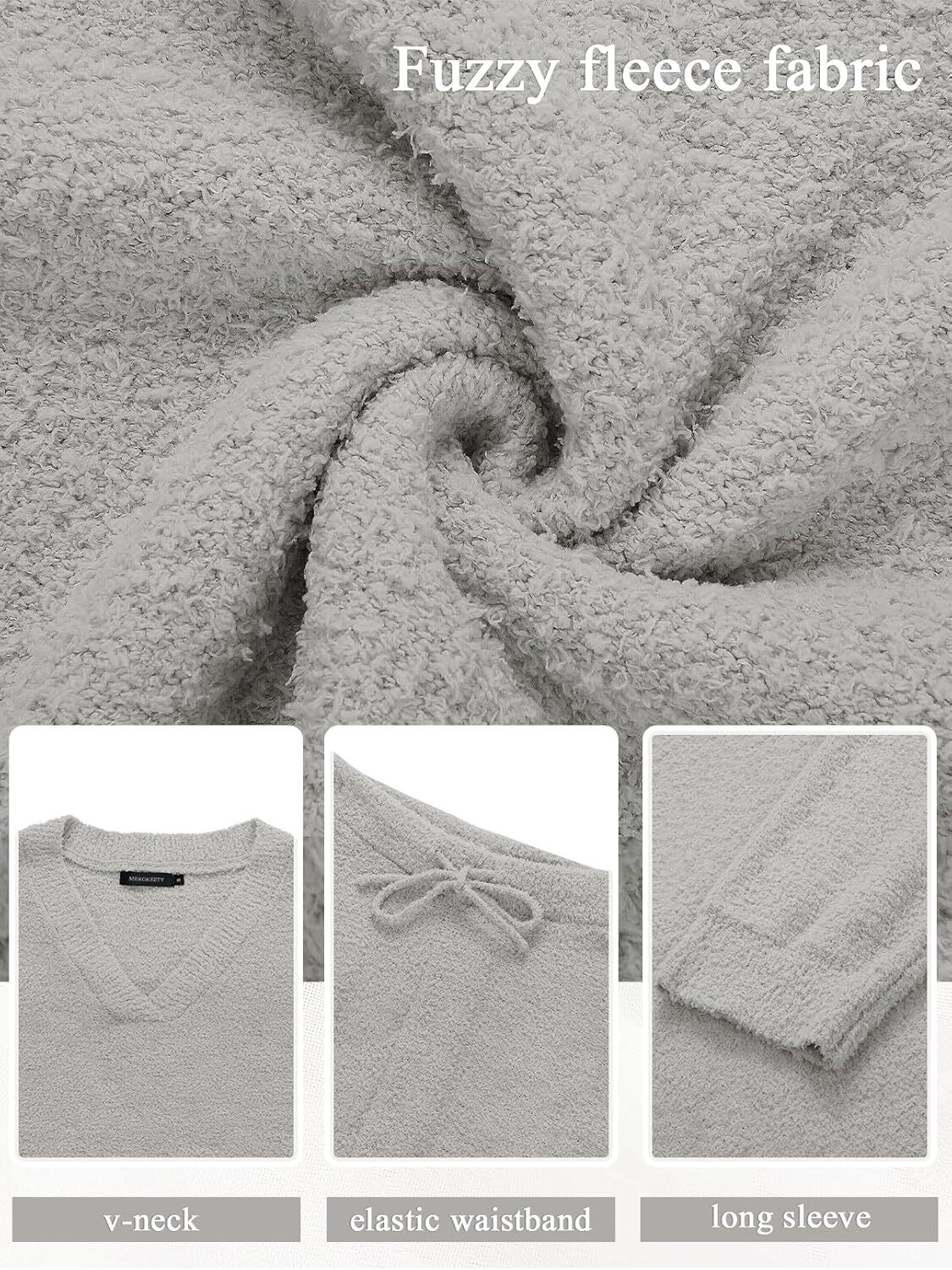 Casual Winter Pajama Set Long Sleeve V Neck Fuzzy Fleece Knitted Pj Sweater Sets
