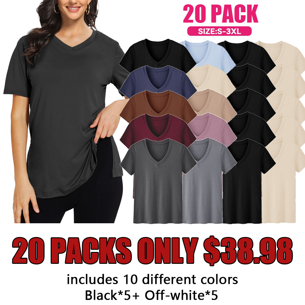 • Womens 10 Pack T-Shirts Basic Short Sleeve V Neck Tops - Plus Size Fashion Loose Fit Lightweight Casual Summer Clothes Lady Comfort