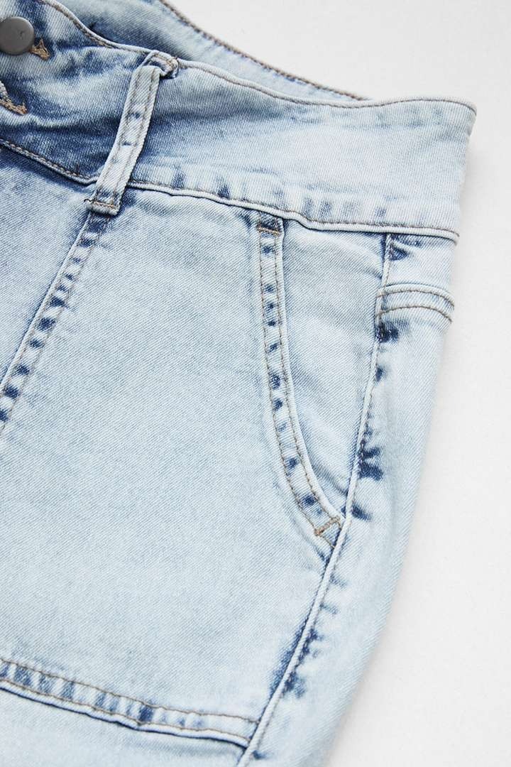 Washed material makes it look vintage and easy on the eyes; Button design makes it more fun and vertical; Real pocket for practicality; Zipper allows for a secure closure when engaged and a smooth release when disengaged and sometimes serves as a stylish nod to modern aesthetics and a dynamic feature on graments