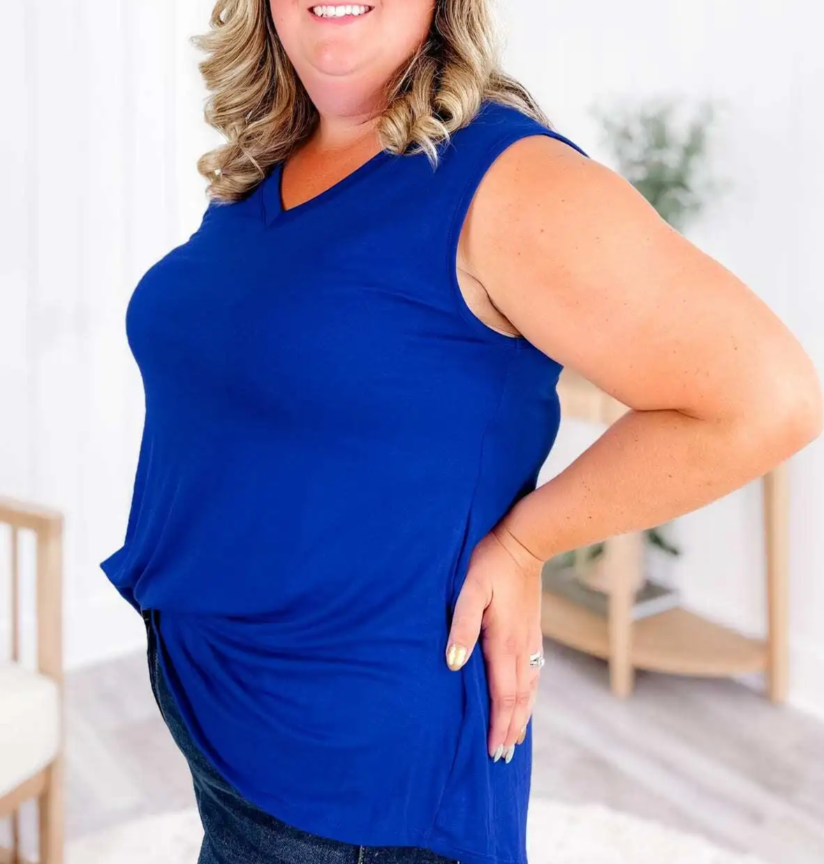 This sleeveless tank top is super comfy and stylish, With its flowy fit and v-neckline, it's got a laid-back vibe and is so easy to style! Wear it with your favorite jeans or shorts for an easy-going, casual look that's always on point. Trust us, this tank top will become your new go-to for relaxed style, so grab a few colors! At this price, why not?