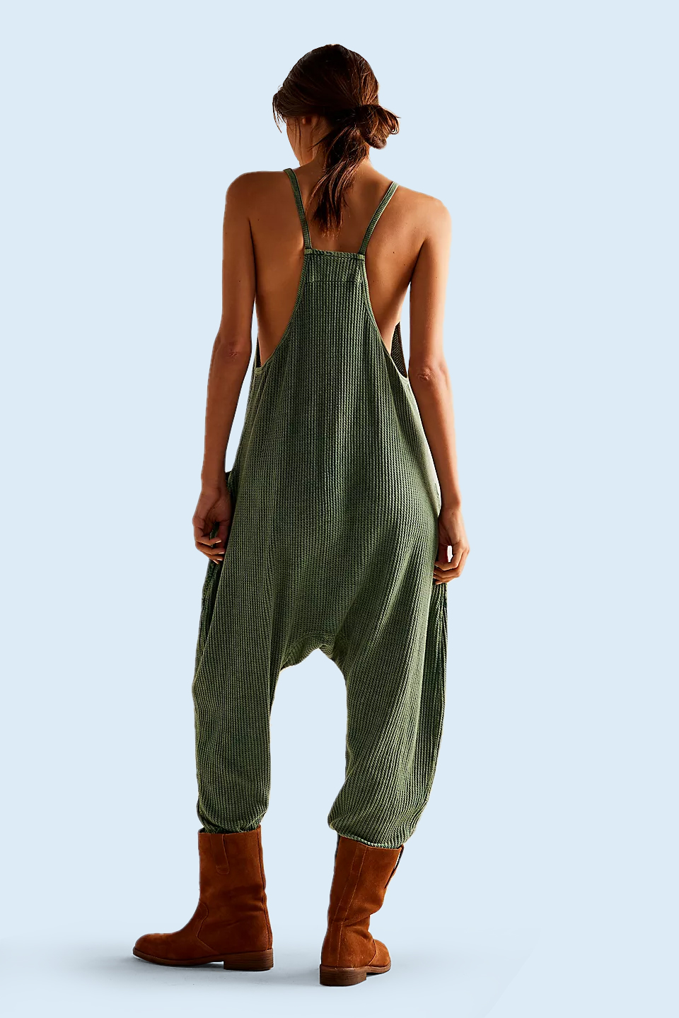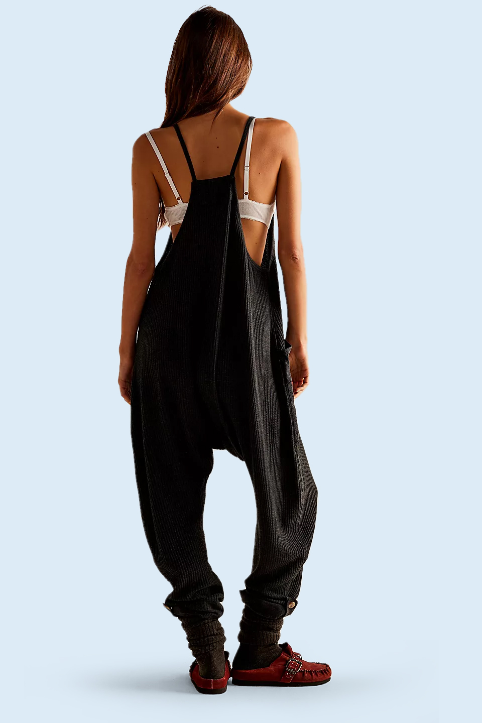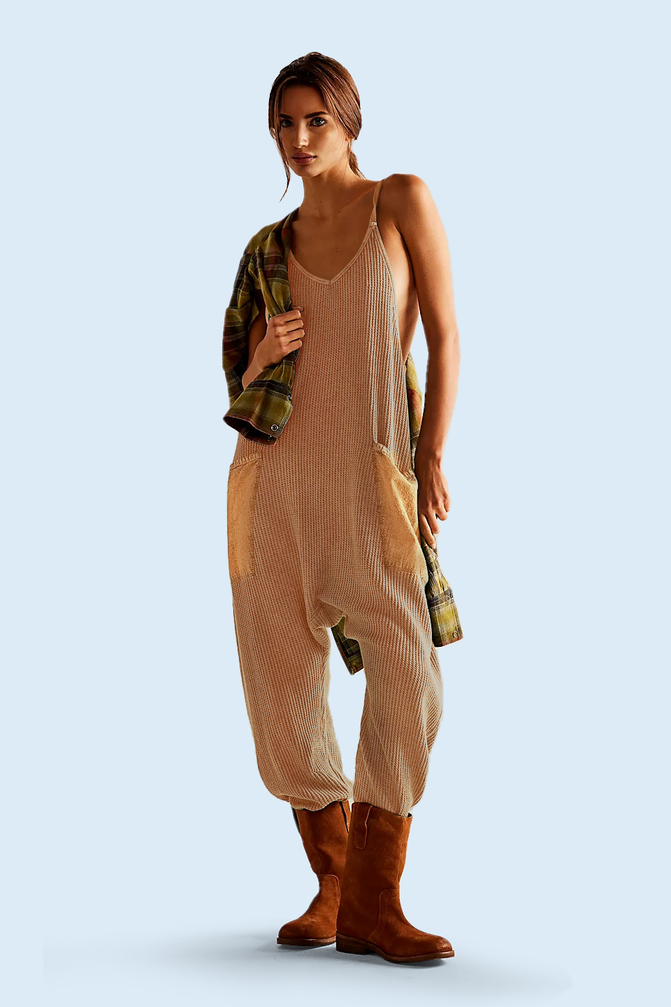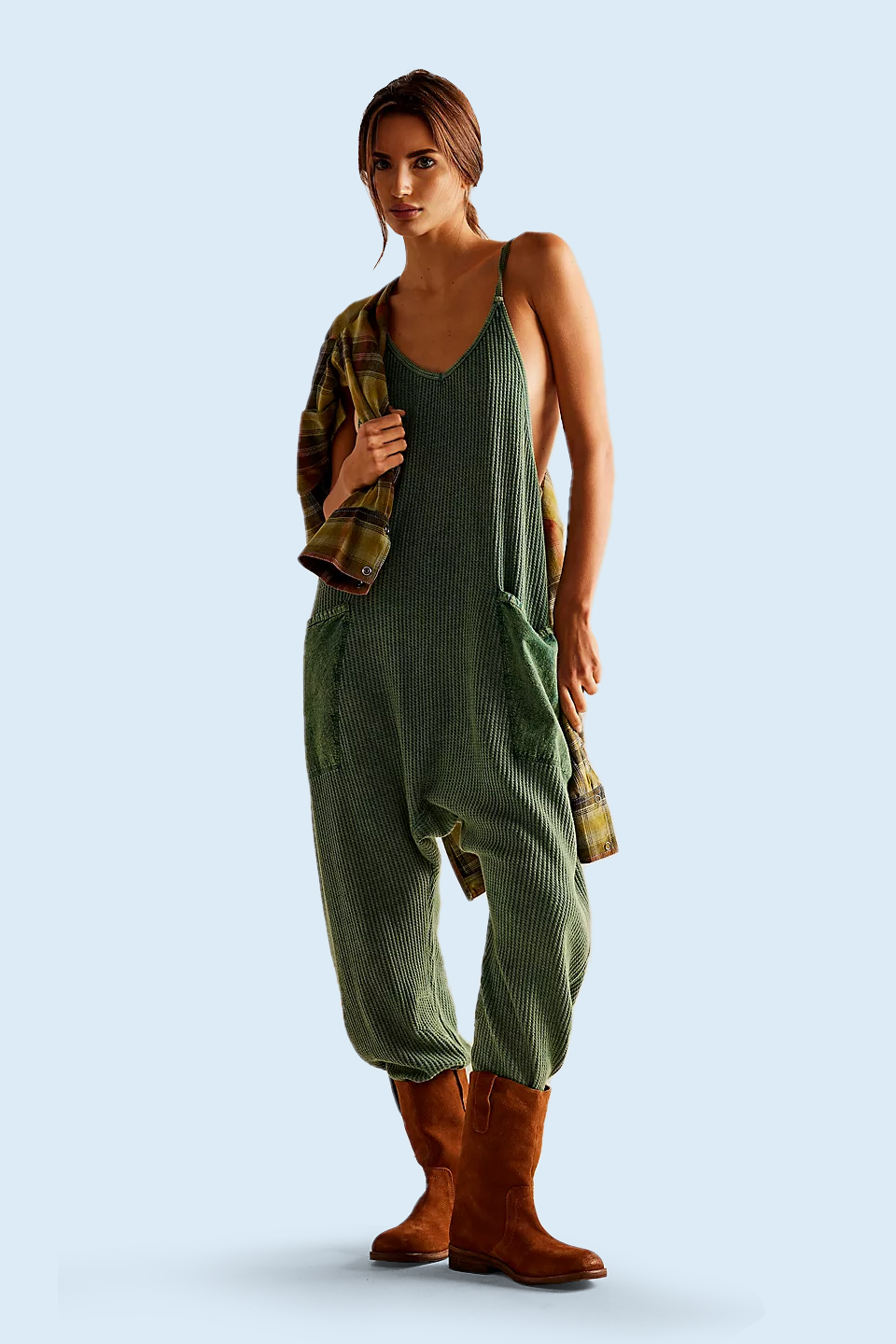 Oversize Waffle Knit Jumpsuit With Pockets, Wear it alone or layered over your favorite tee or layering top for an effortless look!