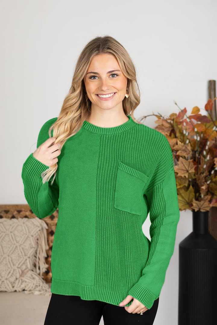 Washed Waffle Knit Sweater With Pocket