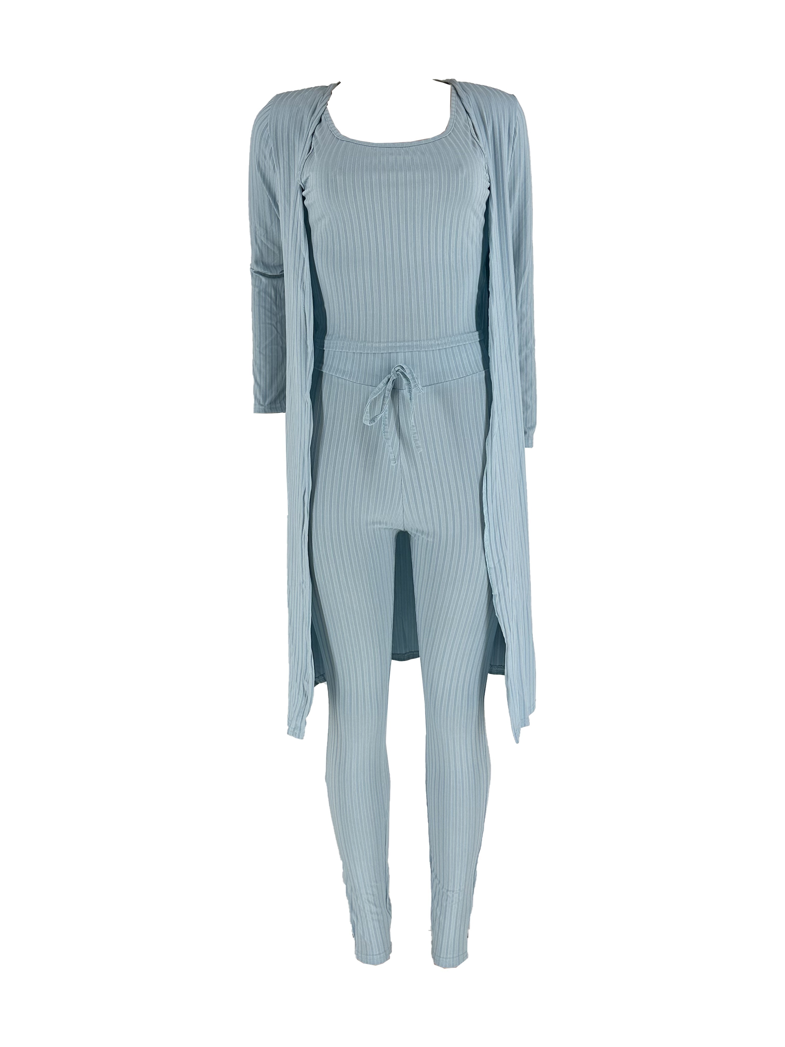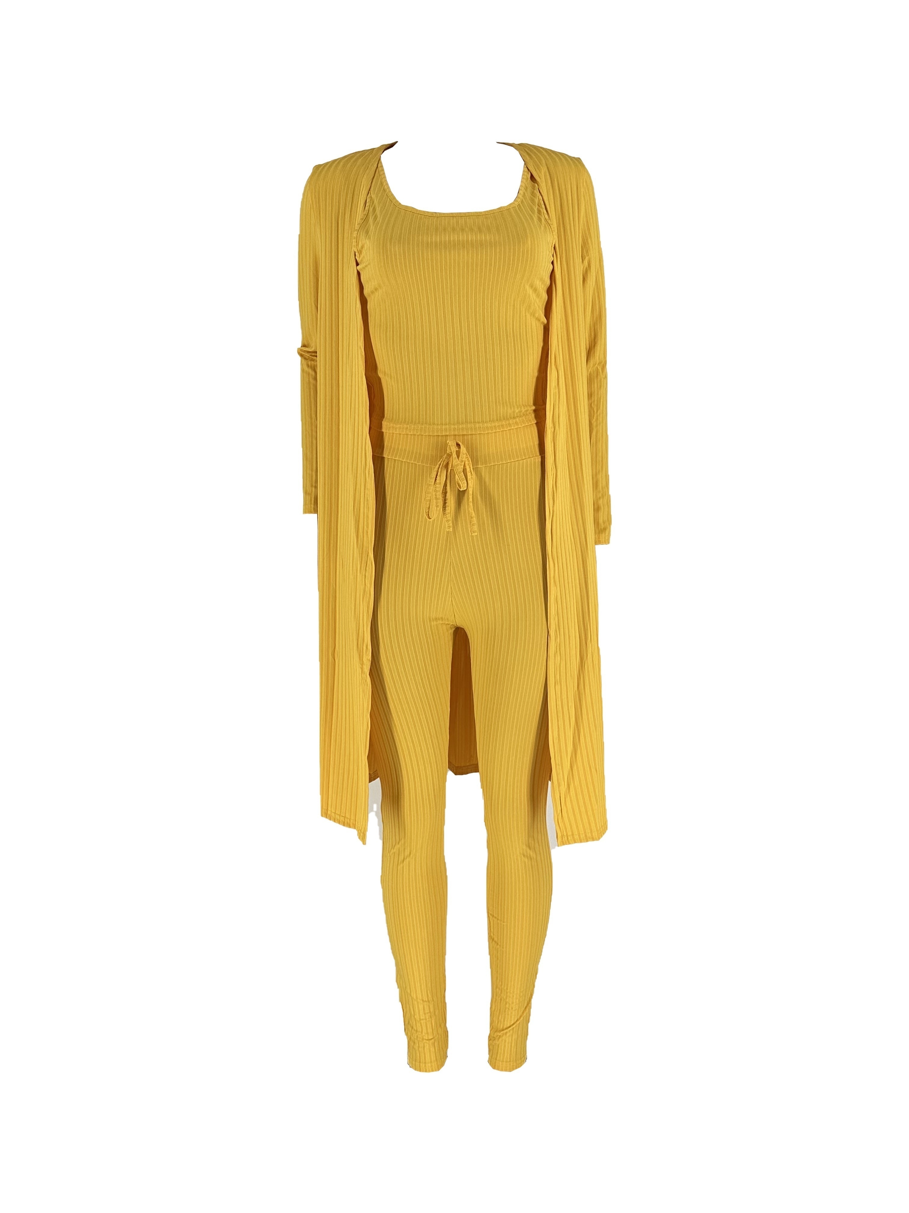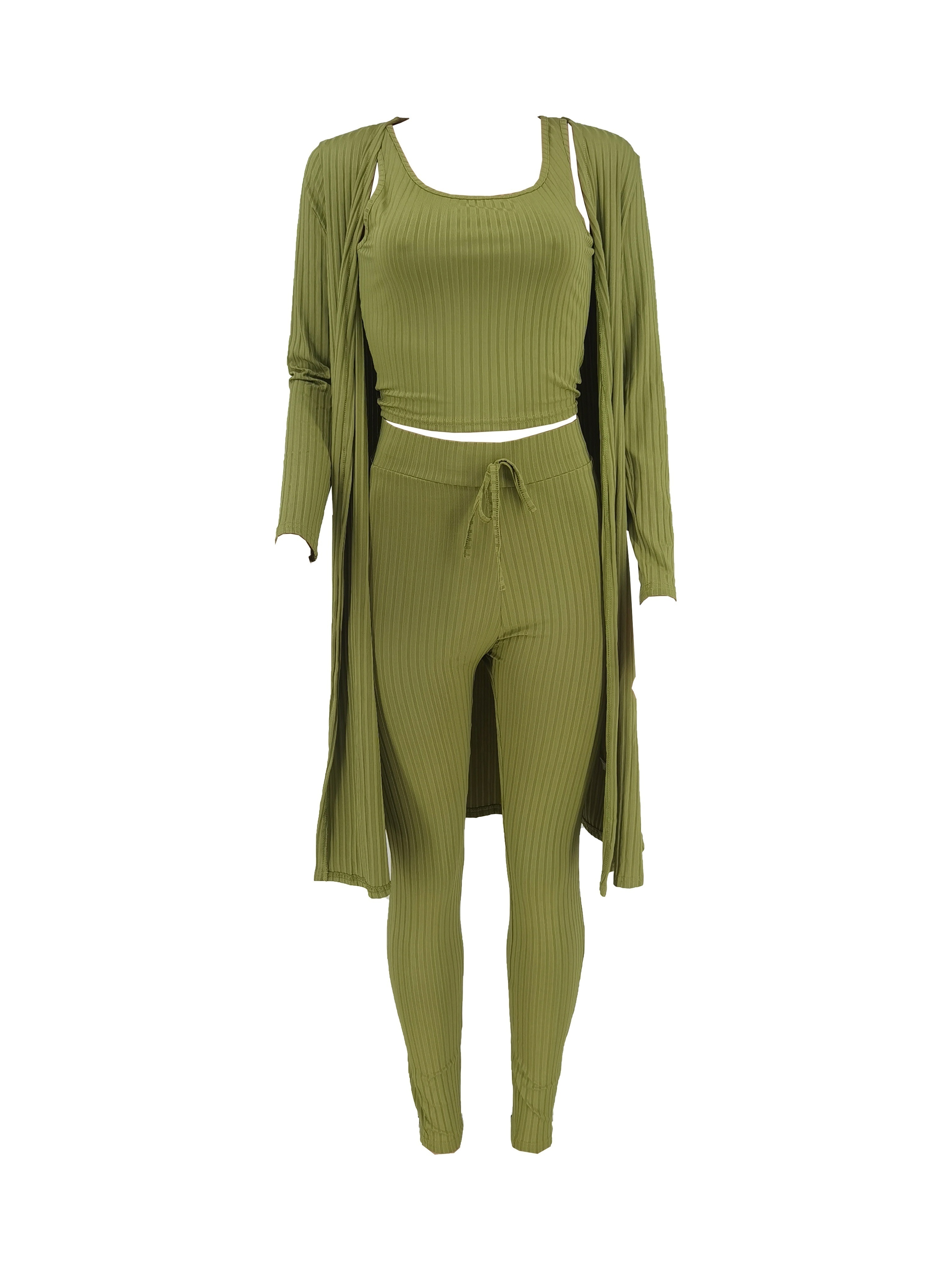Elevate your wardrobe with our Women's Ribbed Three-Piece Outfit Set, the ultimate blend of comfort and style. Perfect for any occasion—from casual outings to vacation adventures—this versatile ensemble features a cozy open front cardigan, a sleek tank top, and chic lace-up pants.