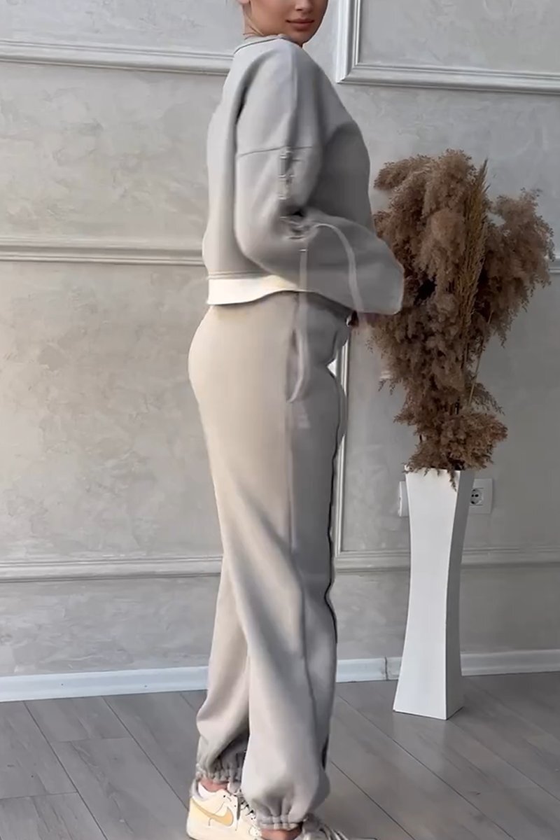 Women's Casual Round Neck Contrast Patchwork Sweatpants Suit