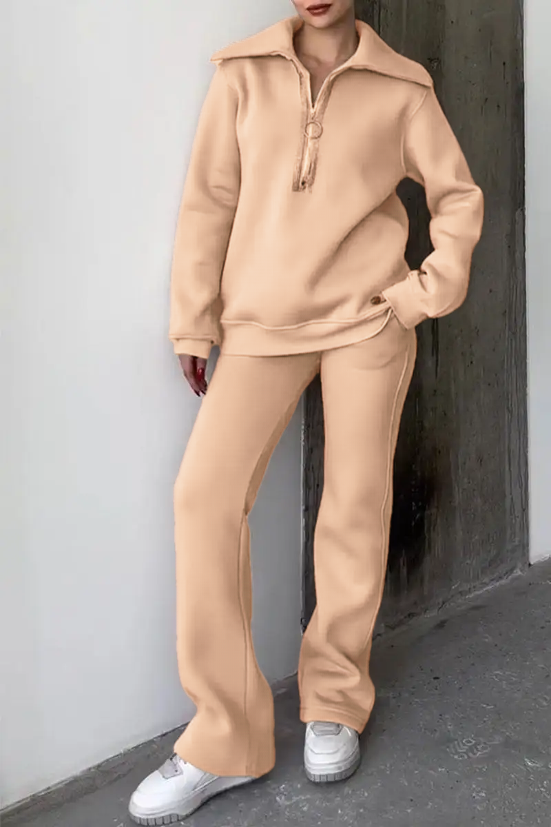 Women's Lapel Long Sleeve Sweatshirt Two Piece Set
