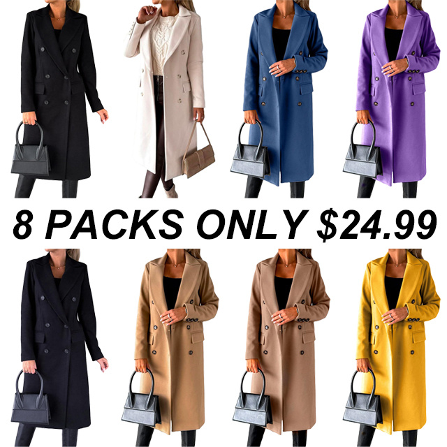 Style: Casual vintage double breasted dressy ladies fashion outfits long winter wool coats pea coats clothes