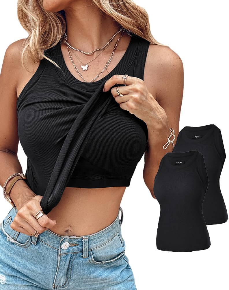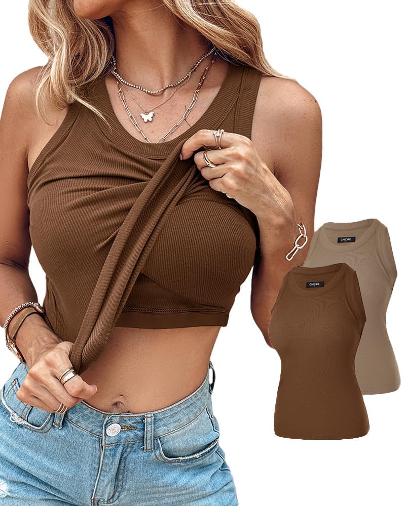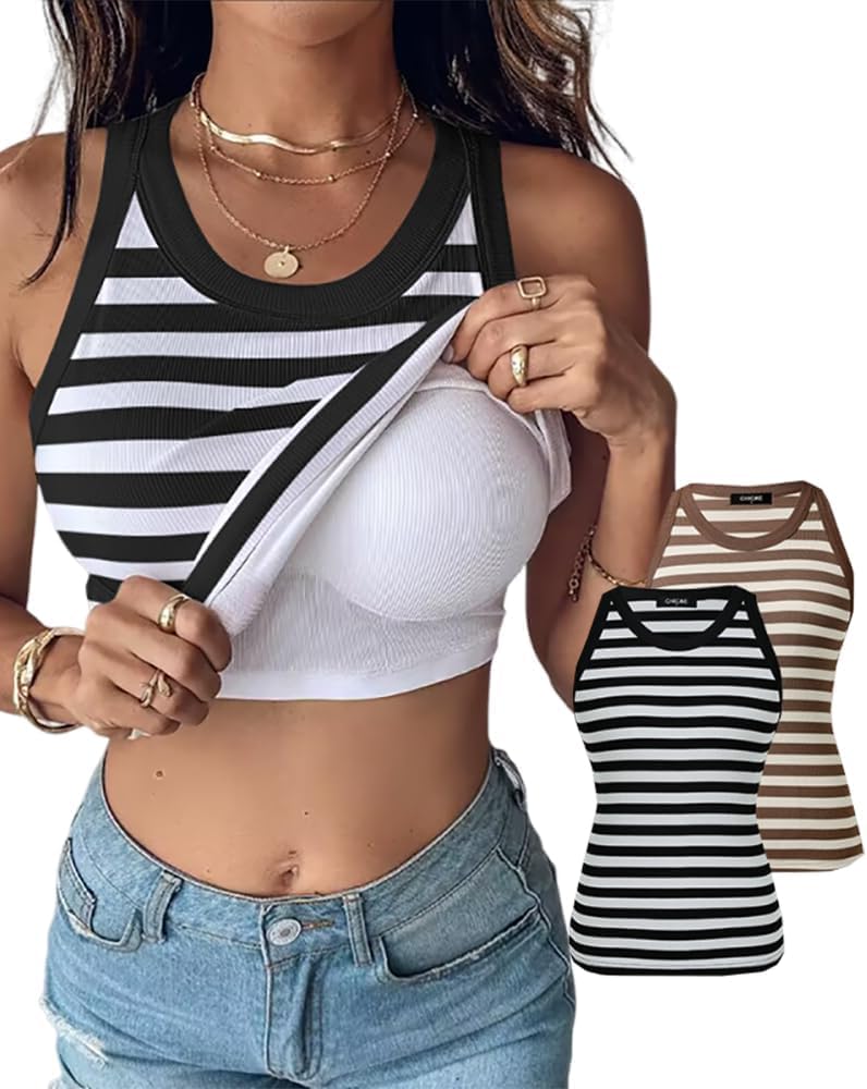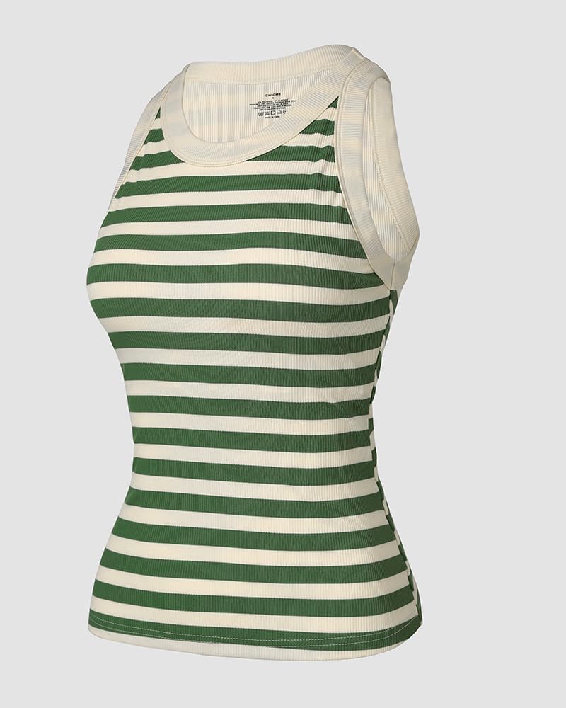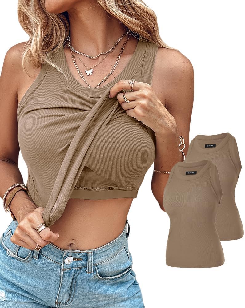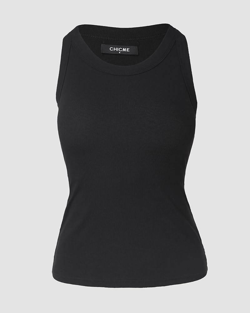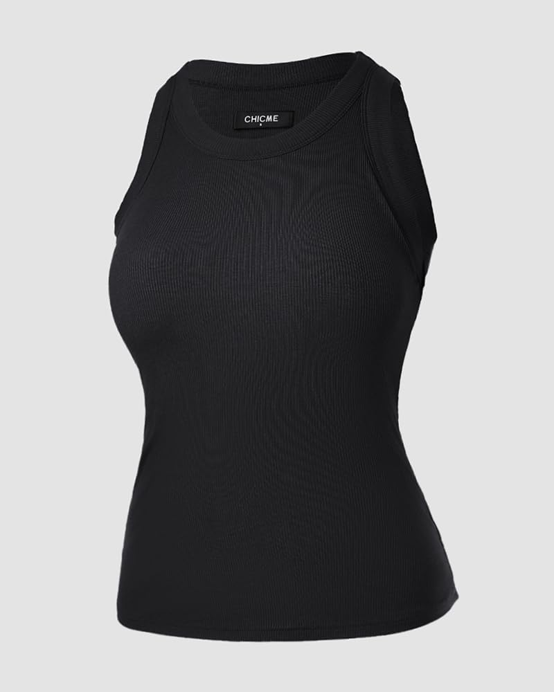 ChicMe Built-in Shelf Bra Tank Tops Ribbed Sleeveless Casual Tops