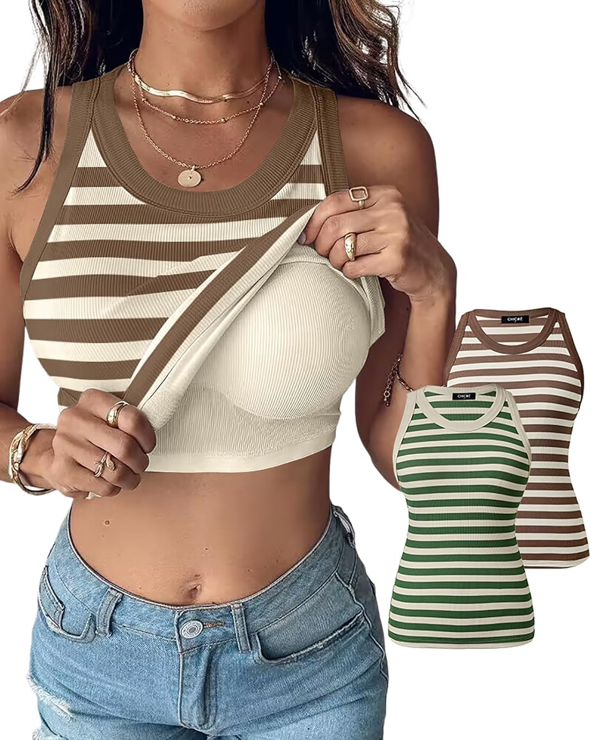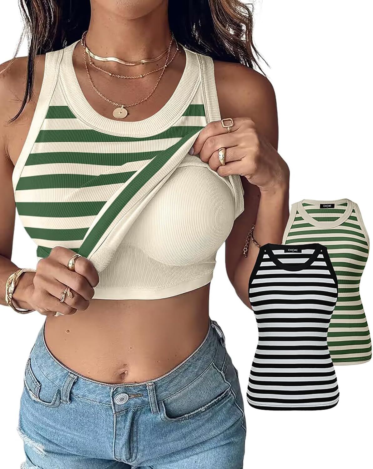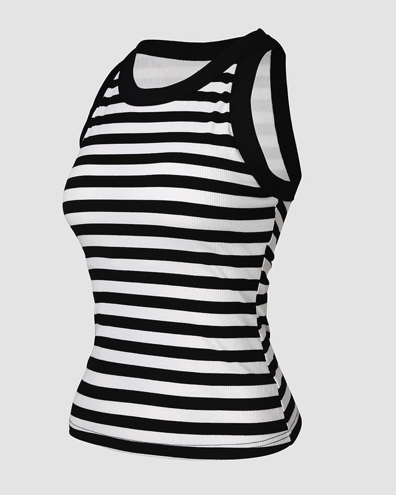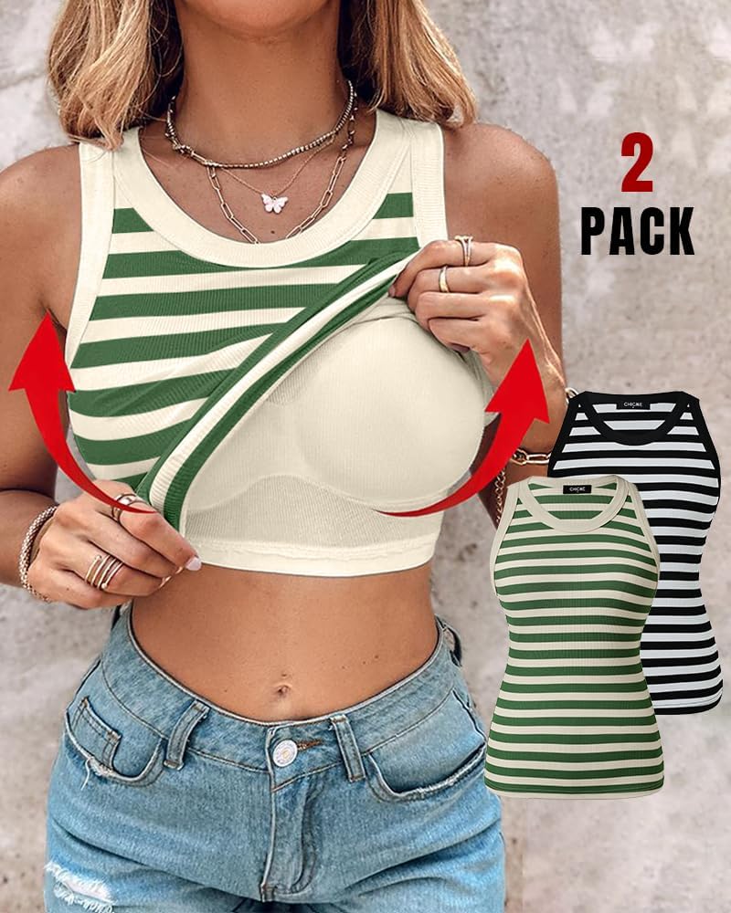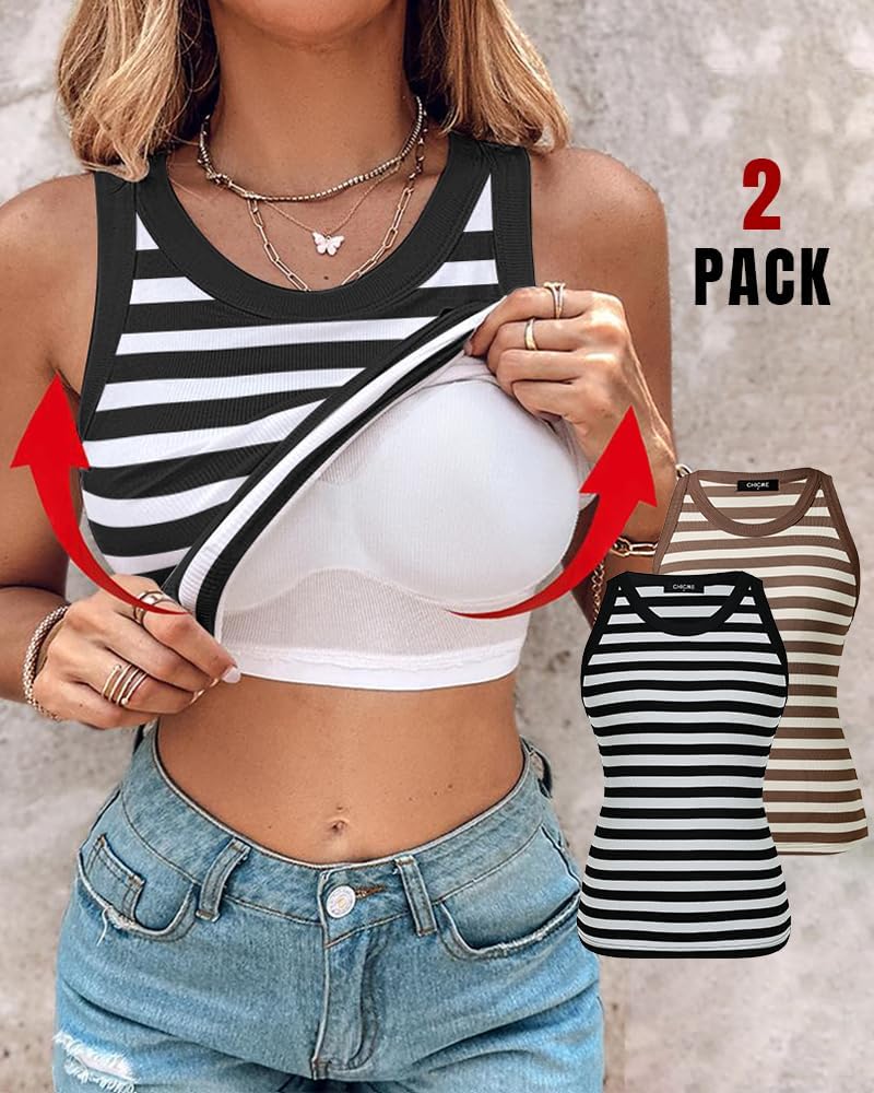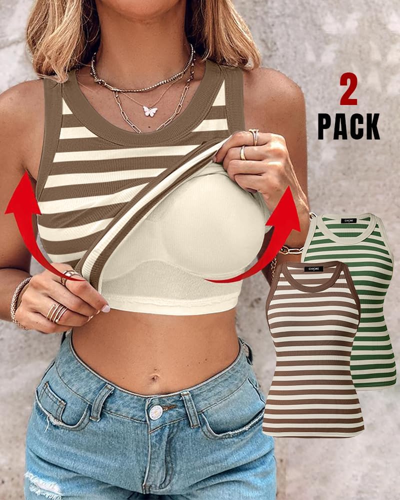 ChicMe Built-in Shelf Bra Tank Tops Ribbed Sleeveless Casual Tops