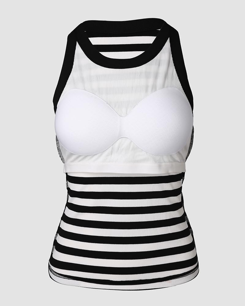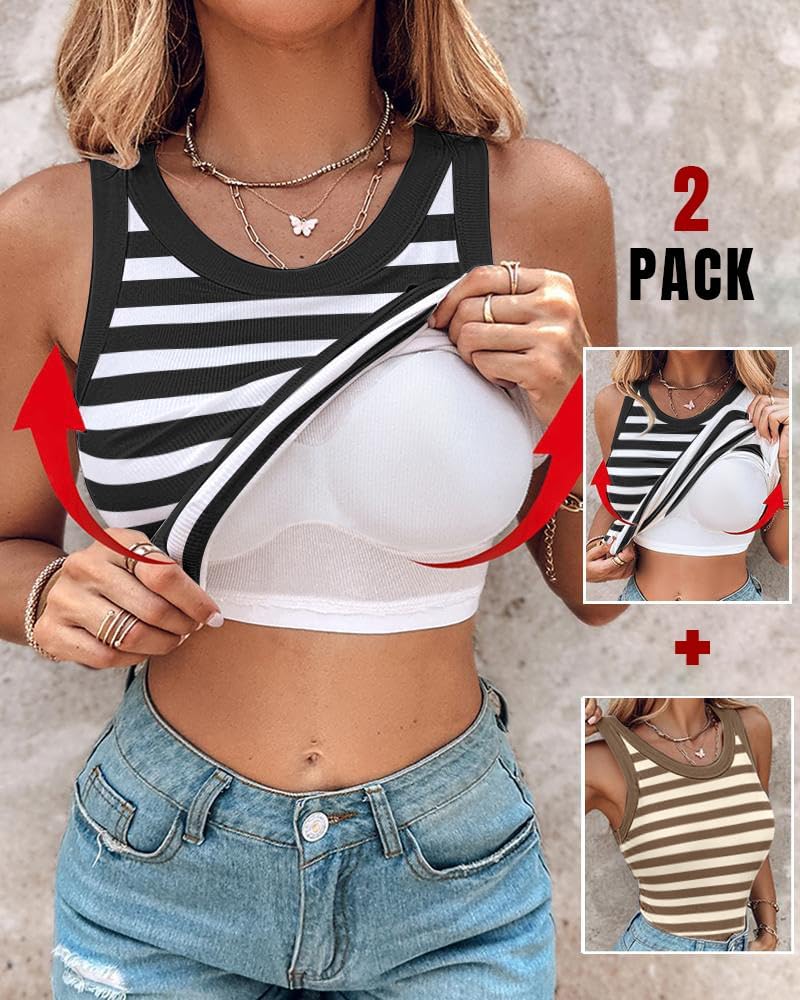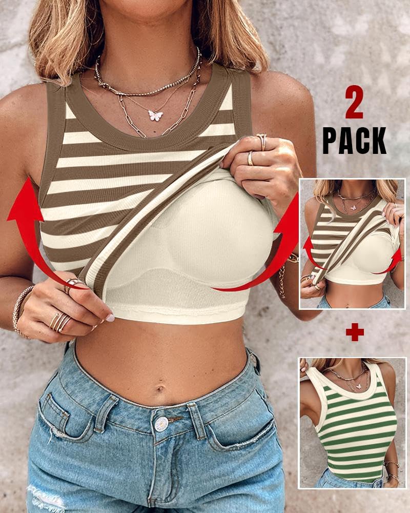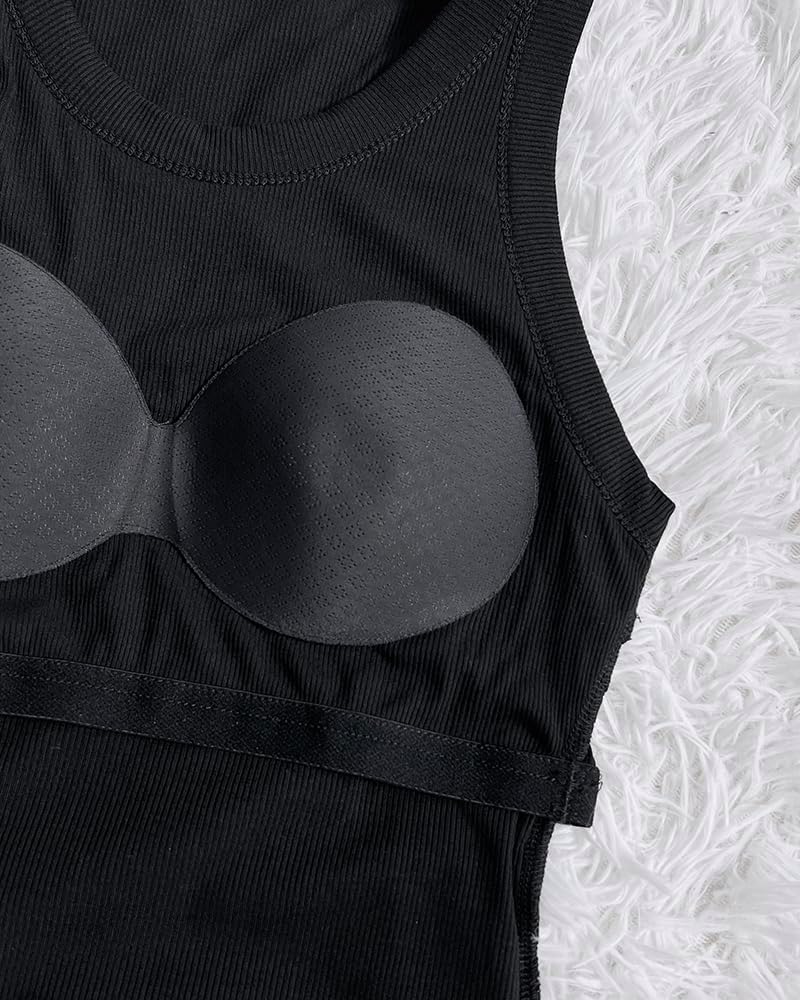 • Women Built in Bra Ribbed Tank Tops Sleeveless Casual Tops
