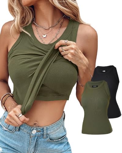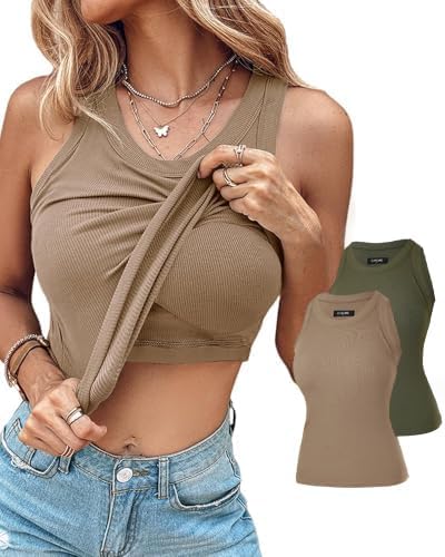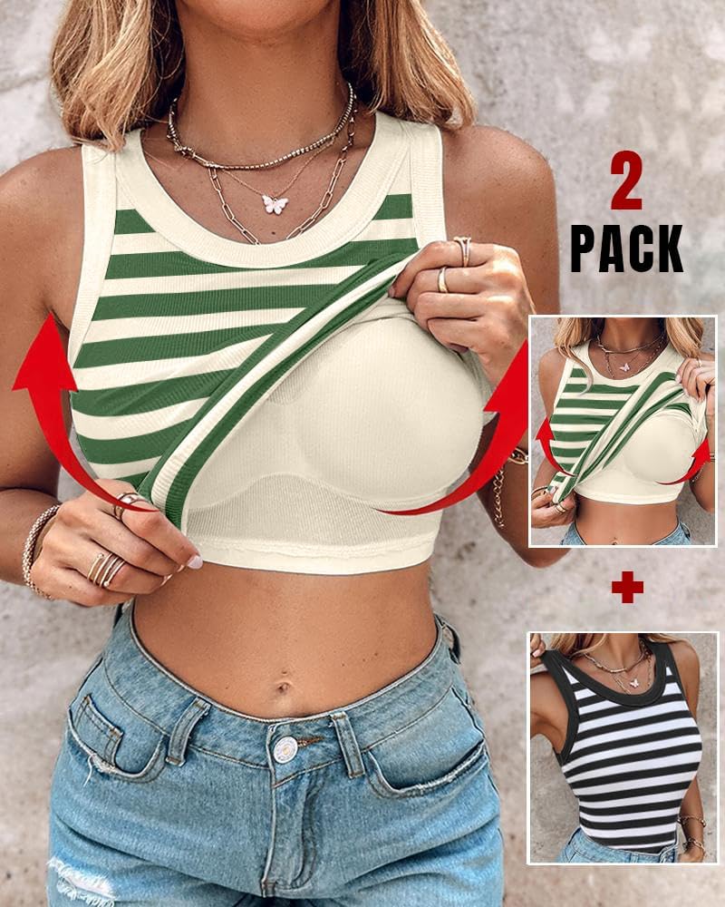 Women Built in Bra Ribbed Tank Tops Sleeveless Casual Tops