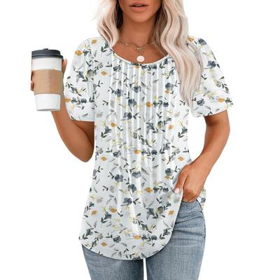 🔥Last Day Promotion🔥Womens T Shirts Short Sleeve Pleated Dressy Casual Scooped Neck Summer Tops Blouses
